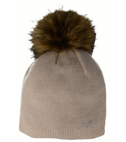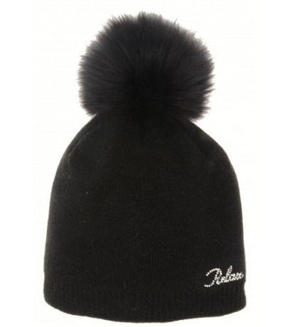 Dámska zimná čiapka s brmbolcom a jednoduchého vzoru s krásnymi trblietavými kamienkami na logu, s brmbolcom.