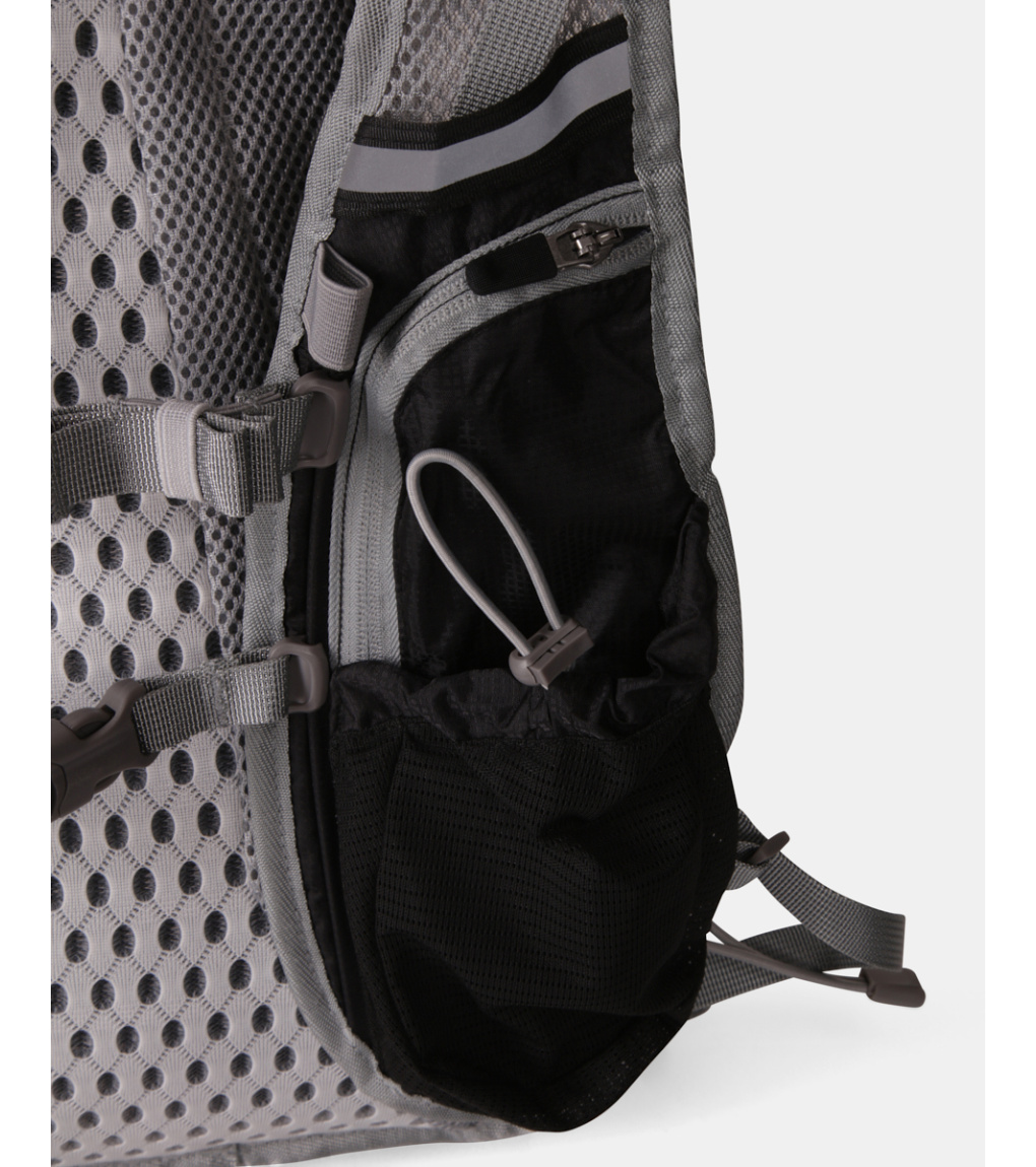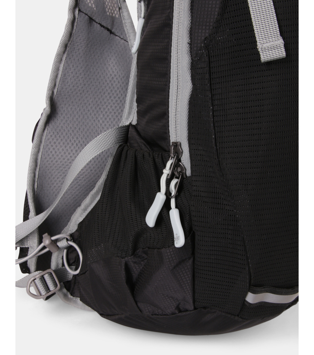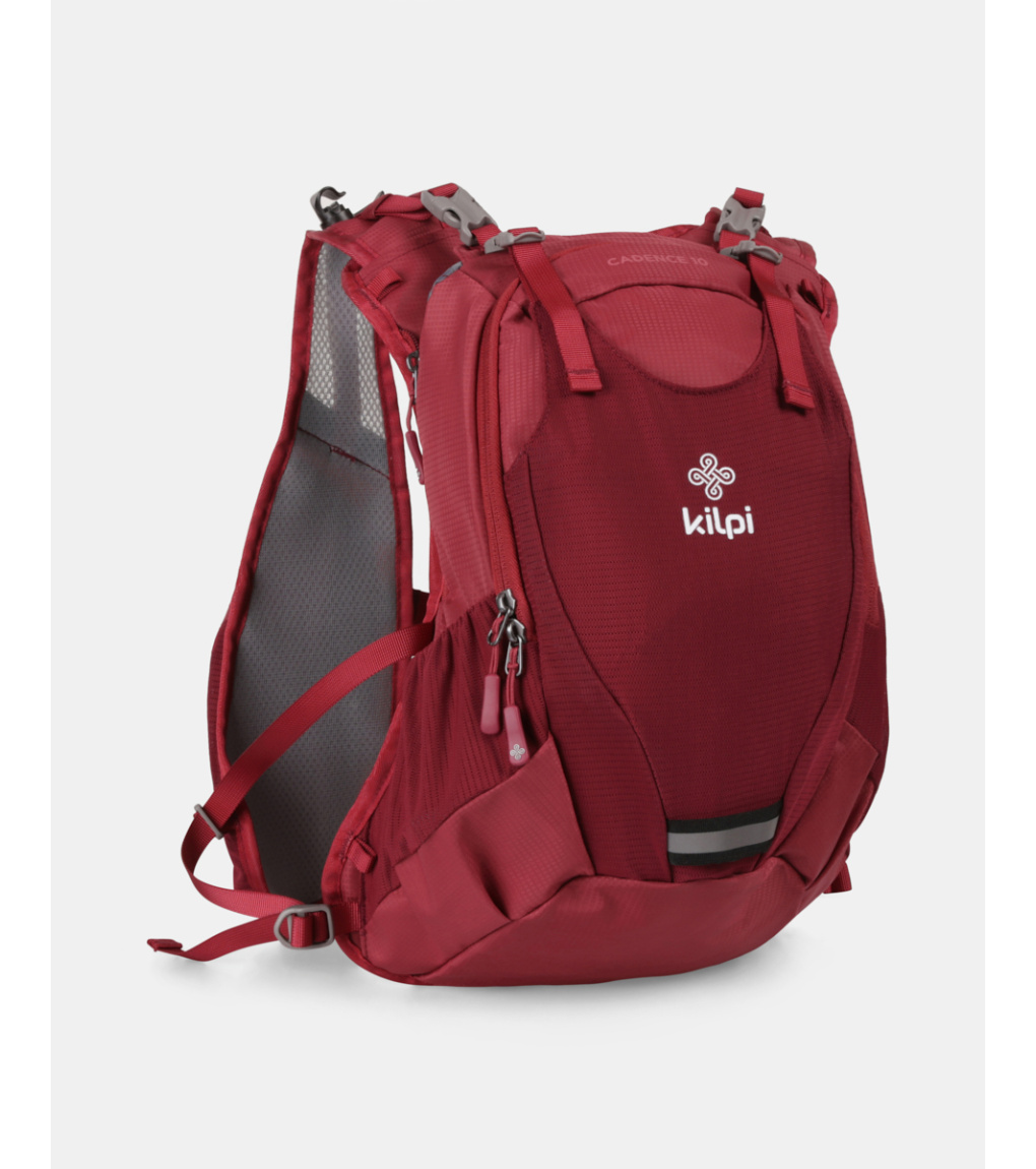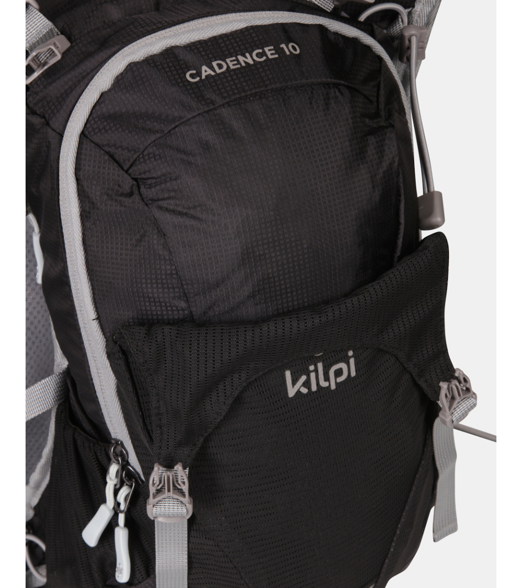Batoh Kilpi CADENCE 10-U je vďaka svojmu spracovaniu a konštrukčnému riešeniu, určený najmä pre beh a cyklistiku. Batoh je veľmi ľahký a prispôsobivý. Má mäkký polstrovaný chrbát, ktorý sa prispôsobí pohybom tela. Široké sieťované ramenné popruhy sú nastaviteľné prepracovaným sťahovacím systémom a majú celkom 4 vrecká - 2 sieťované vrecká na gély, alebo silikónové fľaše a dve zipsové vrecká. Pomocou bedrového a hrudného popruhu s bezpečnostnou píšťalkou, je batoh fixovaný a stabilný. Kilpi CADENCE 10-U je kompatibilný s vodným vakom, ktorý sa umiestňuje do priehradky na chrbte a zafixuje pomocou suchého zipsu. Hadička sa upevňuje pomocou magnetického patentu na prednom ramene a preto sa s ňou veľmi ľahko manipuluje. Predná zipsová priehradka obsahuje prehľadný organizér, sieťované vrecko na helmu alebo bundu v prednej časti a zipsové vrecko na drobnosti. Bežecké palice je možné uchytiť pomocou gumičiek. Ďalšie dve vrecká sú umiestnené na bokoch a pojmú fľašu s objemom pol litra. Celkový objem plecniaka je 10 litrov. Nechýbajú reflexné prvky, ktoré sú u produktov Kilpi štandardom. Rozmery chrbta sú 41 cm x 20 cm.