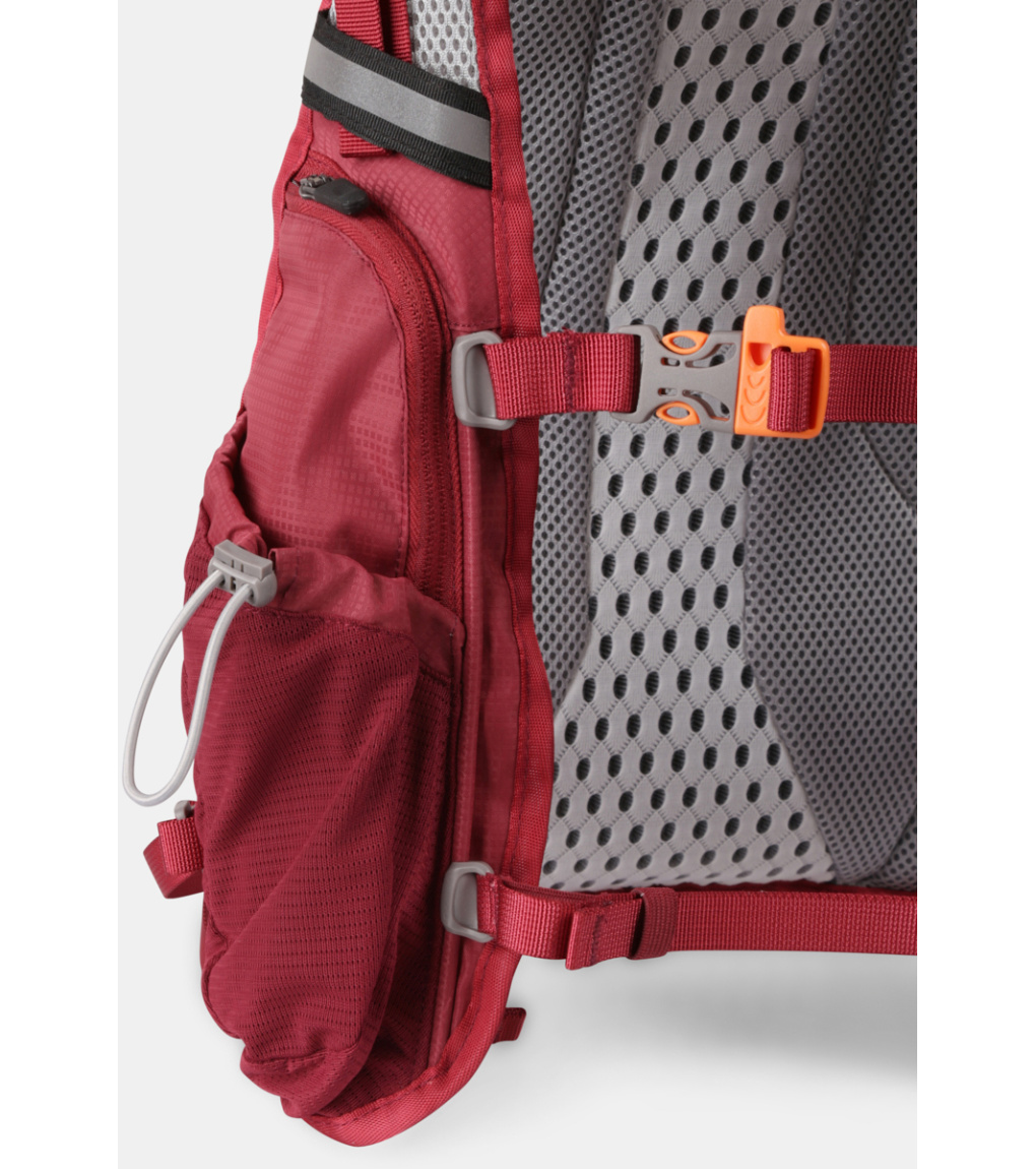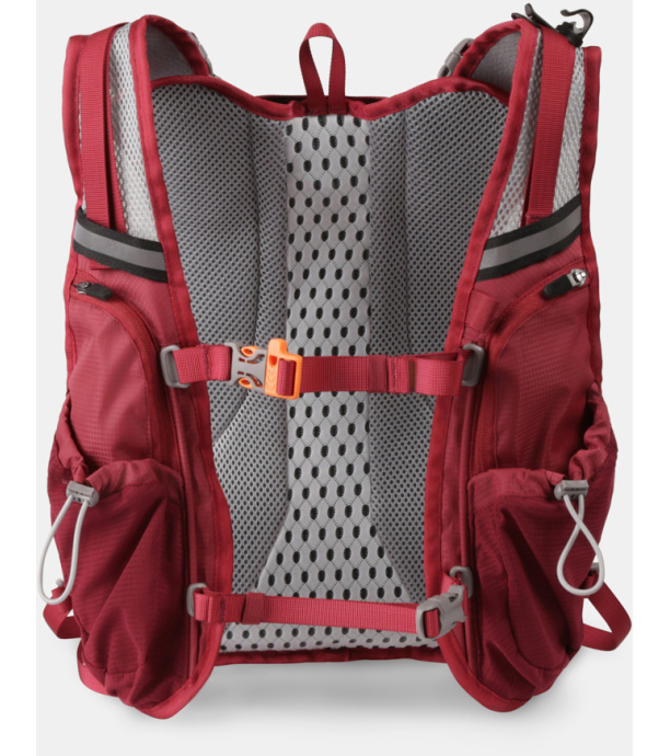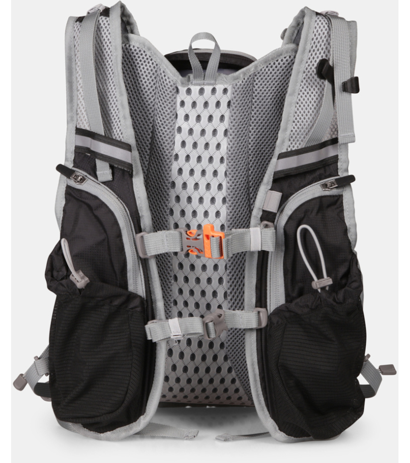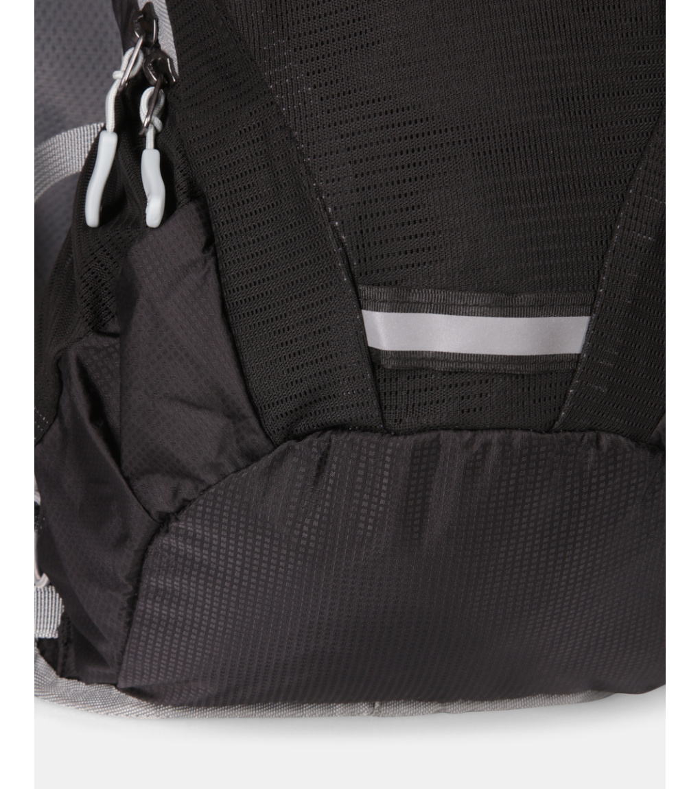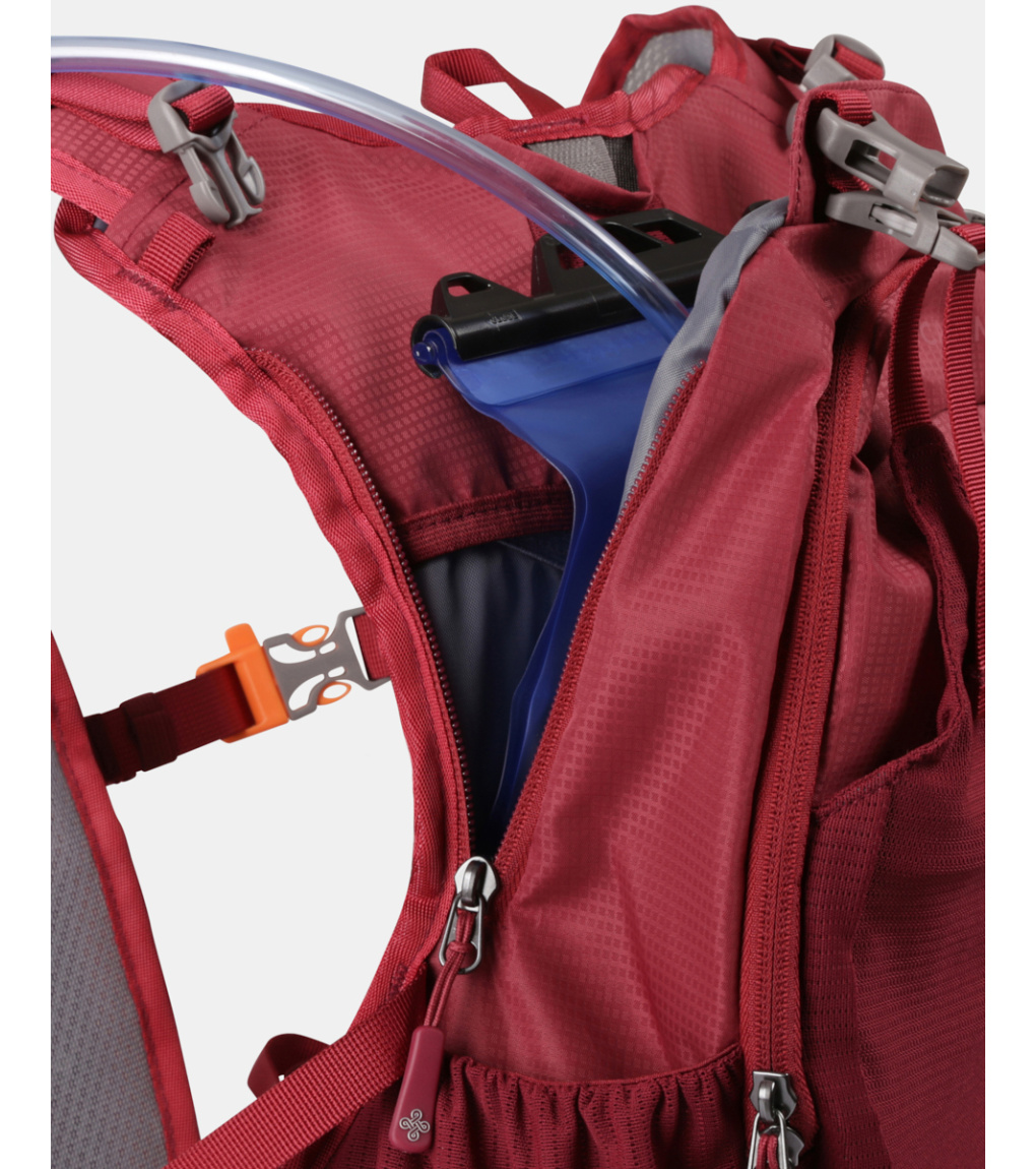 Batoh Kilpi CADENCE 10-U je vďaka svojmu spracovaniu a konštrukčnému riešeniu, určený najmä pre beh a cyklistiku. Batoh je veľmi ľahký a prispôsobivý. Má mäkký polstrovaný chrbát, ktorý sa prispôsobí pohybom tela. Široké sieťované ramenné popruhy sú nastaviteľné prepracovaným sťahovacím systémom a majú celkom 4 vrecká - 2 sieťované vrecká na gély, alebo silikónové fľaše a dve zipsové vrecká. Pomocou bedrového a hrudného popruhu s bezpečnostnou píšťalkou, je batoh fixovaný a stabilný. Kilpi CADENCE 10-U je kompatibilný s vodným vakom, ktorý sa umiestňuje do priehradky na chrbte a zafixuje pomocou suchého zipsu. Hadička sa upevňuje pomocou magnetického patentu na prednom ramene a preto sa s ňou veľmi ľahko manipuluje. Predná zipsová priehradka obsahuje prehľadný organizér, sieťované vrecko na helmu alebo bundu v prednej časti a zipsové vrecko na drobnosti. Bežecké palice je možné uchytiť pomocou gumičiek. Ďalšie dve vrecká sú umiestnené na bokoch a pojmú fľašu s objemom pol litra. Celkový objem plecniaka je 10 litrov. Nechýbajú reflexné prvky, ktoré sú u produktov Kilpi štandardom. Rozmery chrbta sú 41 cm x 20 cm.