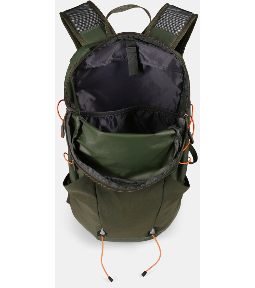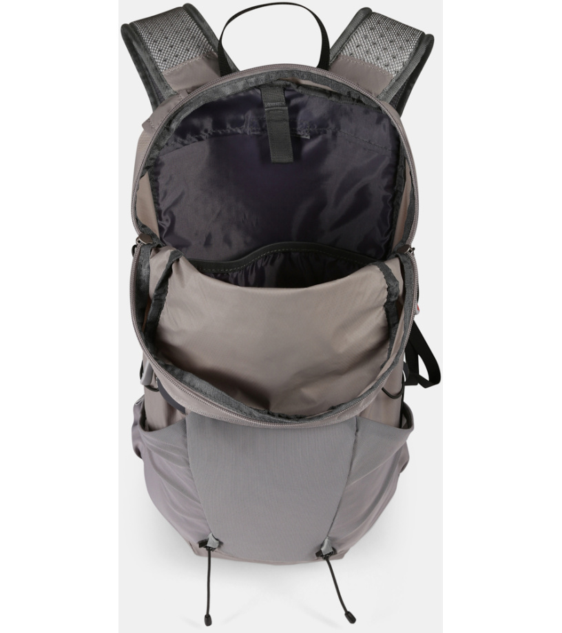 Hlavná komora pojme všetko dôležité, zatiaľ čo vrecko na hydratačný vak vám umožní pohodlne dopĺňať tekutiny počas pohybu. Praktické členenie dopĺňa predné sieťované vrecko pre rýchly prístup k drobnostiam, dve bočné vrecká na fľaše a vnútorný organizér, vďaka ktorému zostanú menšie veci prehľadne usporiadané.