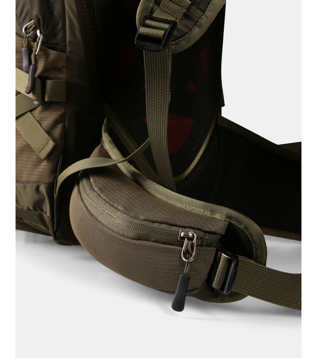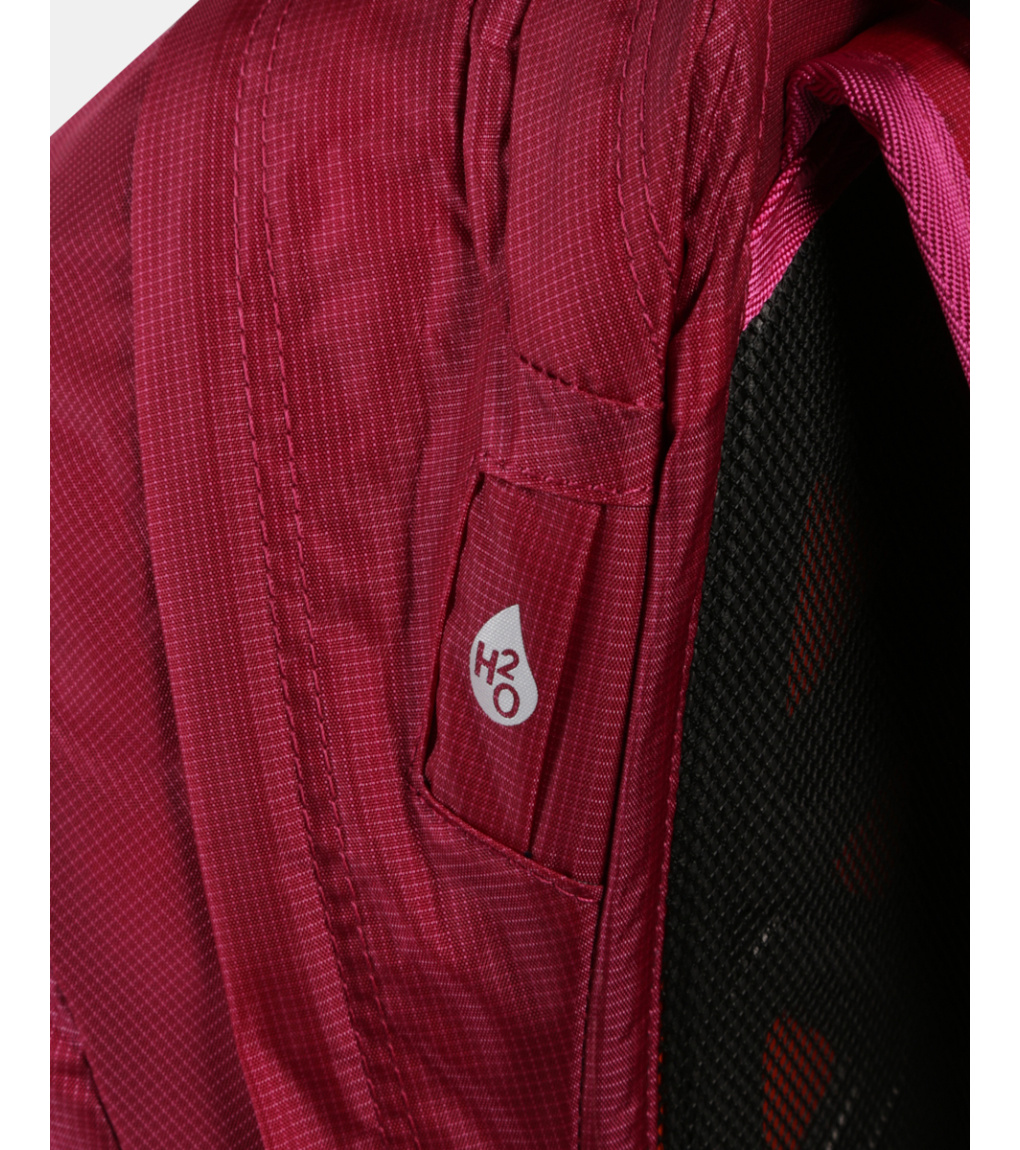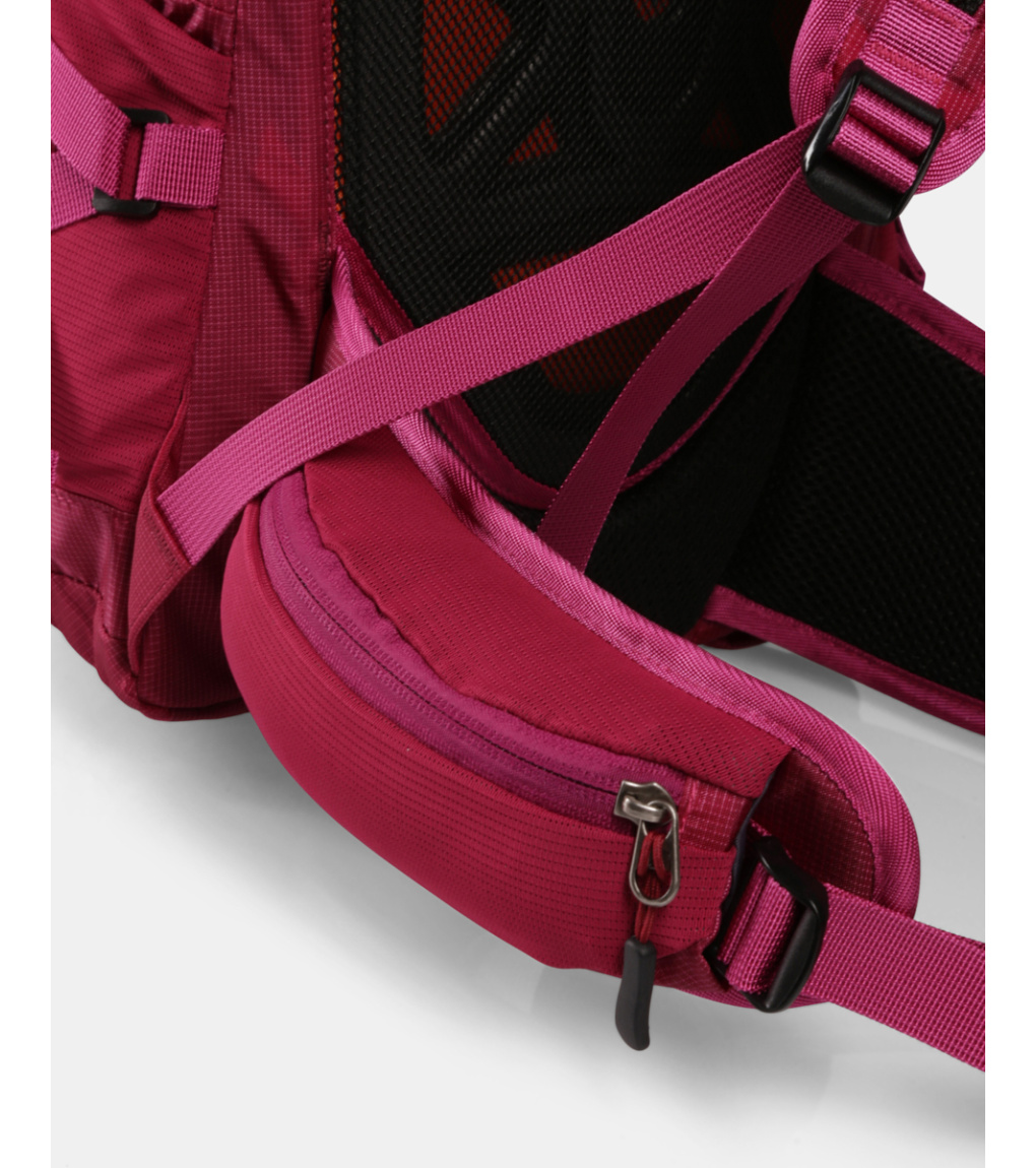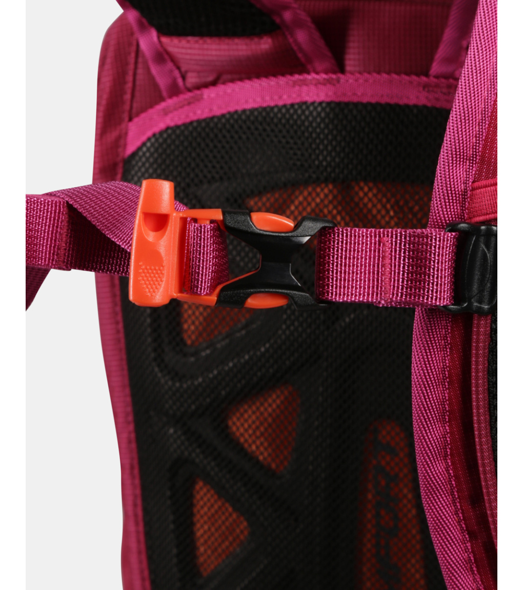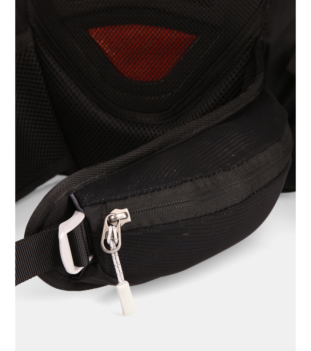 Chrbtový systém je mäkký a vypolstrovaný penovou výstuhou, ktorá zaisťuje pohodlie pri nosení a zároveň umožňuje prúdenie vzduchu medzi batohom a chrbtom. Tvarované a perforované ramenné popruhy podporujú lepšiu ventiláciu. Stabilitu pri pohybe zvyšujú výškovo nastaviteľné hrudné popruhy s integrovanou píšťalkou a polstrovaný bedrový pás, ktorý je navyše vybavený dvoma praktickými vreckami na zips.