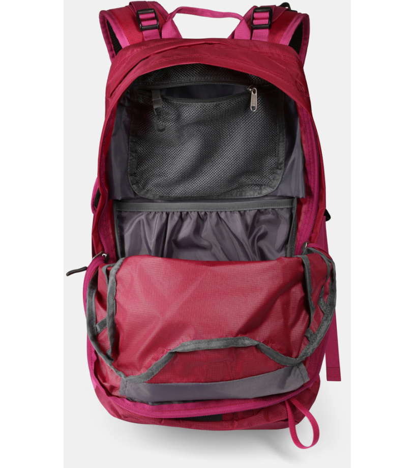 Batoh disponuje hlavnou komorou, vnútorným vreckom pre hydratačný systém a niekoľkými ďalšími úložnými priestormi, vrátane predného sieťovaného vrecka na rýchlo dostupné veci, vrecka na cennosti a dvoch bočných vreciek na fľaše. Nechýba ani integrovaná pláštenka ukrytá na dne, úchyty na cepíny či trekové palice a reflexné prvky pre lepšiu viditeľnosť. Odolná ripstop tkanina z kombinácie nylonu a polyesteru zaisťuje dlhú životnosť aj pri náročnejšom používaní.