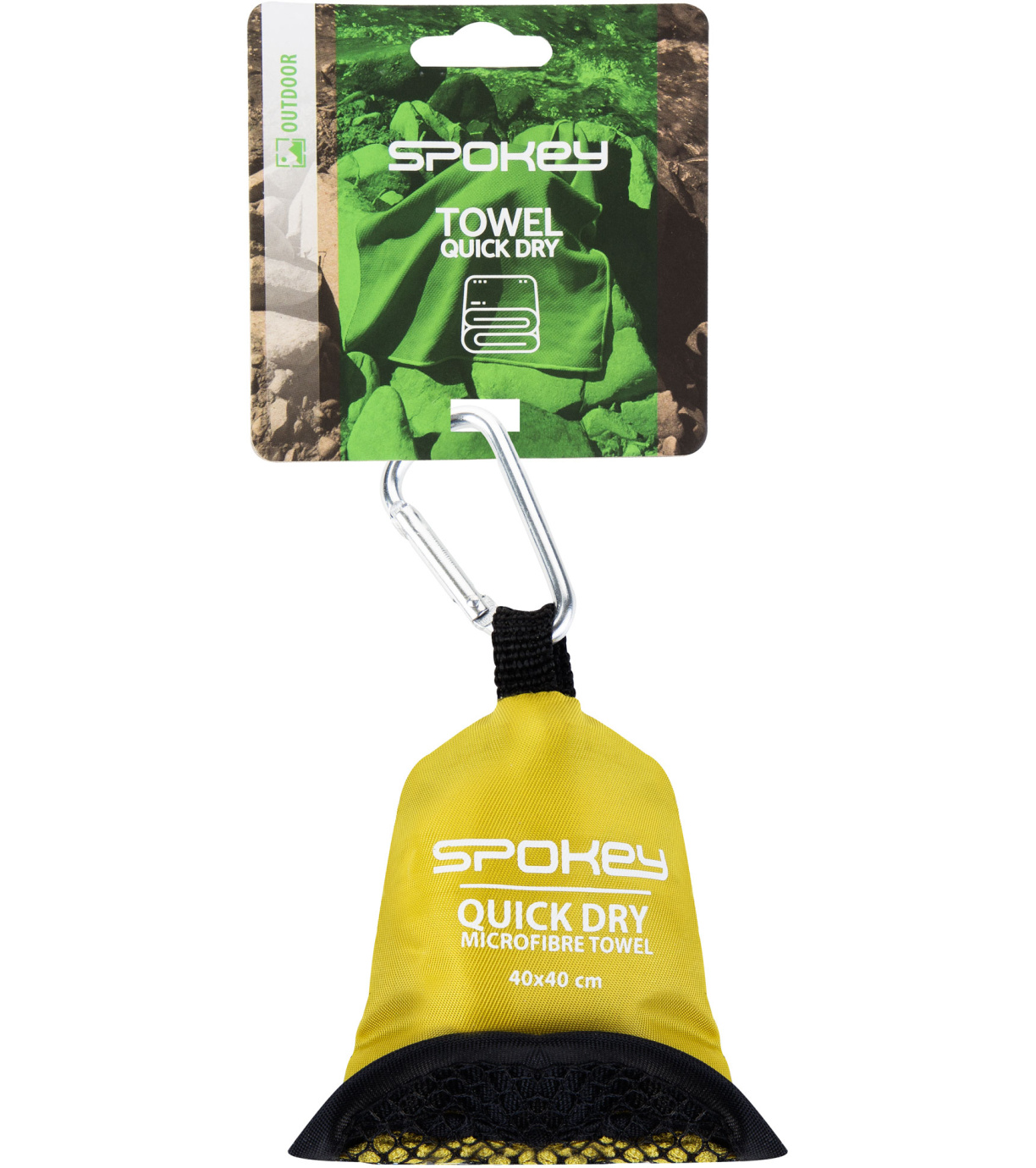 Cestovní a turistický ručník malého rozměru ze savého, měkkého a velmi příjemného materiálu, je ideální volbou pro zapálené sportovce, cestovatele a turisty. Díky speciálnímu polyesterovému a polyamidovému vláknu, zabere o cca 80% méně místa než běžný froté ručník. Ručník je vybavený karabinou pro připevnění například k batohu.