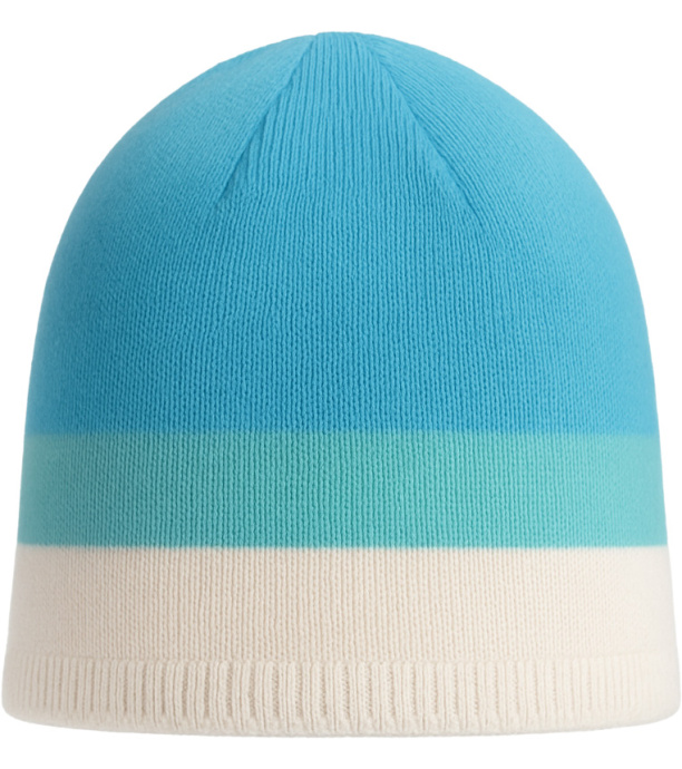 Ľahká pletená čiapka v kombinácii svetlo modrej, tyrkysovej a bielej farby. Vyrobená z mäkkého, príjemného materiálu, ktorý poskytuje teplo a komfort pri nosení. Vďaka jednoduchému dizajnu a pružnému lemu dobre sedí na hlave. Skvelá voľba pre zimné športy aj každodenné nosenie.