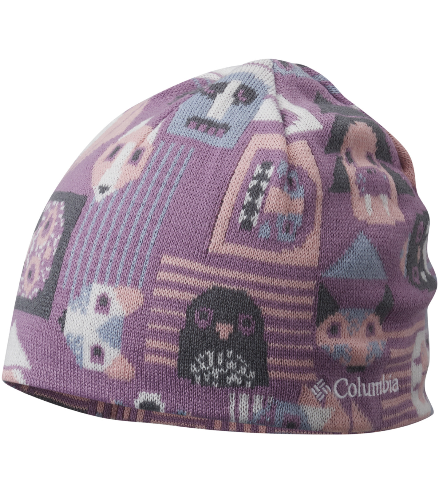 Zimná obojstranná detská čiapka Columbia Urbanization Mix ™ v kombinácii veselého motívu z jednej strany a jednofarebnej varianty zo strany druhej.