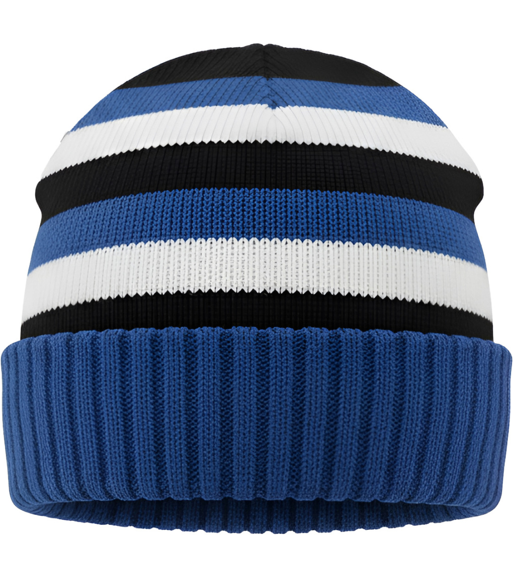 Pletená zimná čiapka v pruhovanom dizajne kombinuje rôzne farby. Je vyrobená z mäkkého a hrejivého materiálu, ktorý poskytuje príjemné teplo aj v chladných dňoch. Vďaka širokému vyhrnutému lemu dobre drží tvar a pohodlne sedí na hlave. Štýlový a praktický doplnok na zimné obdobie.