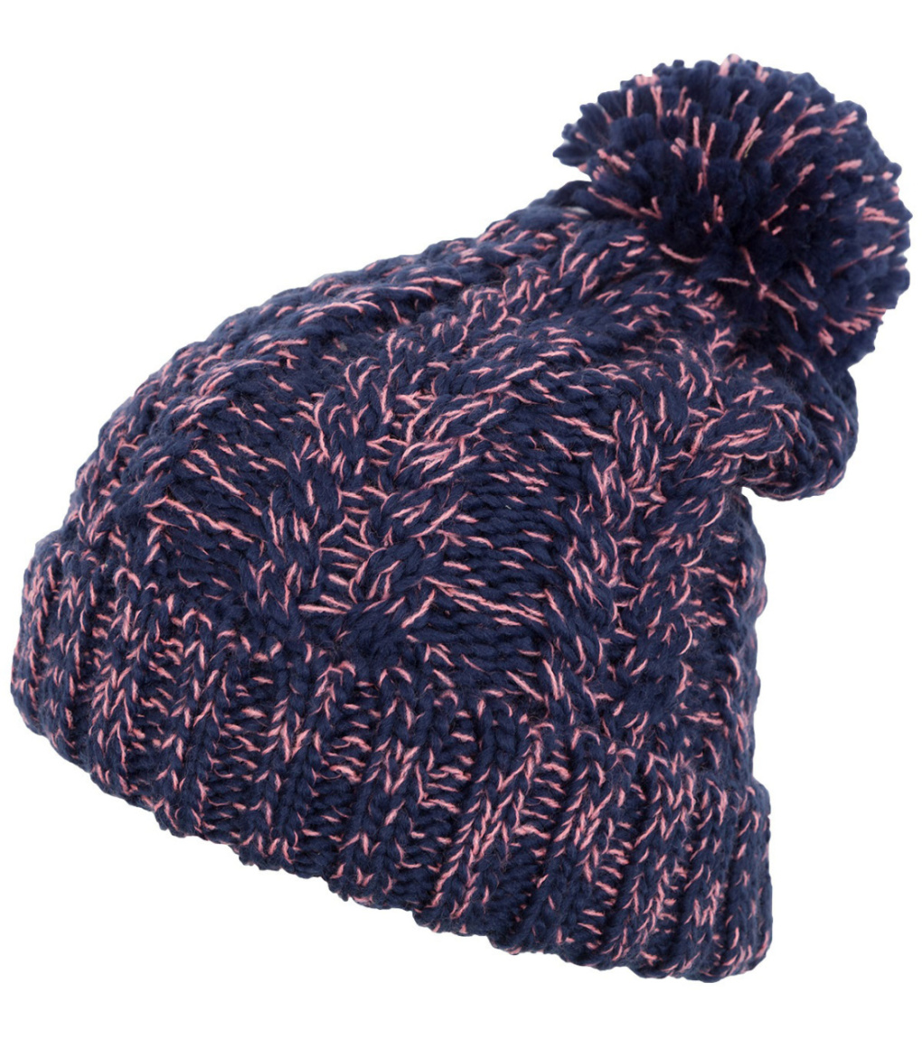 Dámska čiapka s vyhrnutým lemom a brmbolcom vyrobená technikou volumetrického pletenia. Bude vyzerať dobre nielen k športovému oblečeniu, ale aj k mestskému. Čiapka je teplá a odolná proti oderu s dodatočnou fleecovou podšívkou pre lepšiu tepelnú izoláciu.