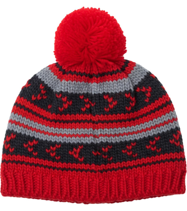 Hrejivá pletená zimná čiapka s výrazným farebným vzorom, ktorá zaujme na prvý pohľad. Veľká brmbolce na vrchu podčiarkuje zimný štýl a dodáva čiapku moderný nádych.