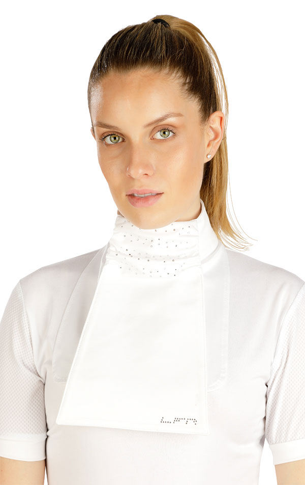 Plastron. Stojáček řasený s ozdobnými kamínky. Vzadu zapínání na suchý zip.
