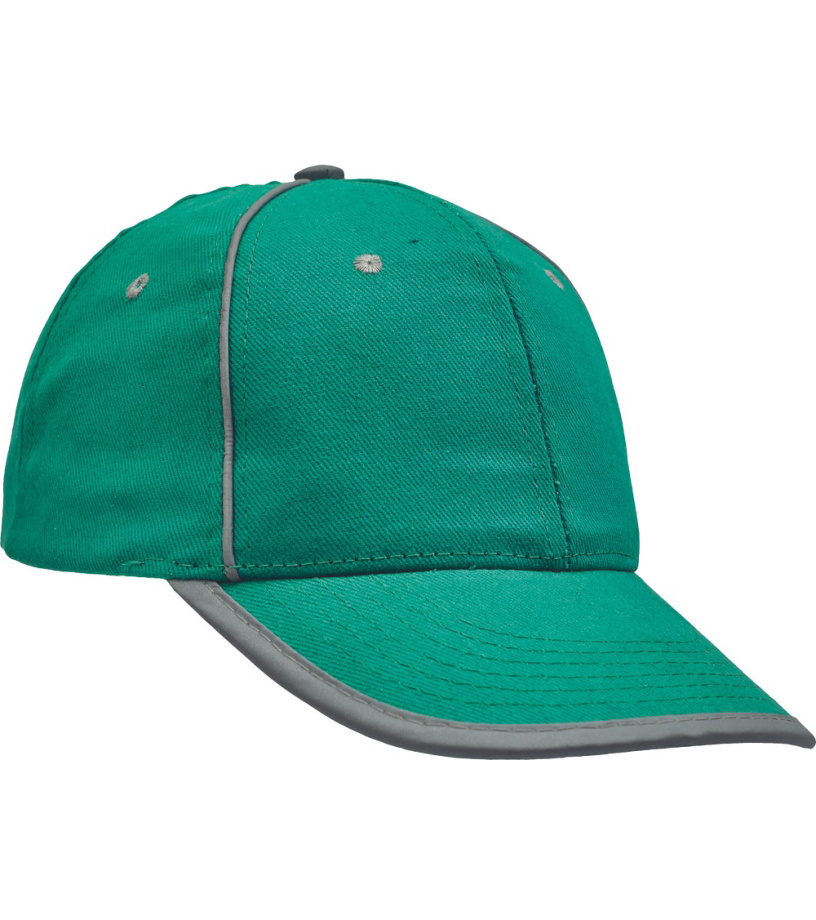 Popis: Čiapka baseballového typu s reguláciou veľkosti pomocou suchého zipsu a s reflexnými doplnkami.