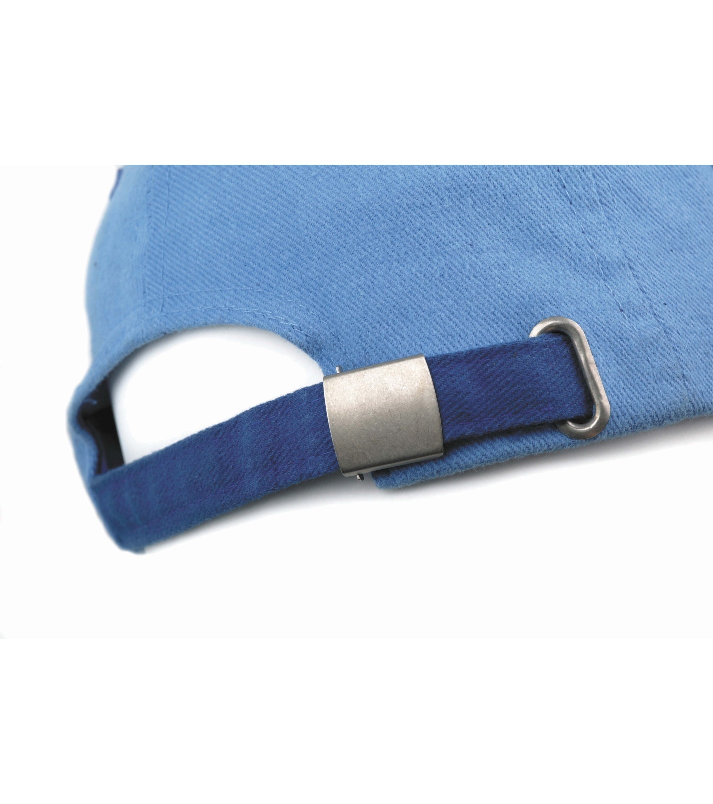 Popis: Čiapka baseballového typu s reguláciou veľkosti pomocou kovovej spony.