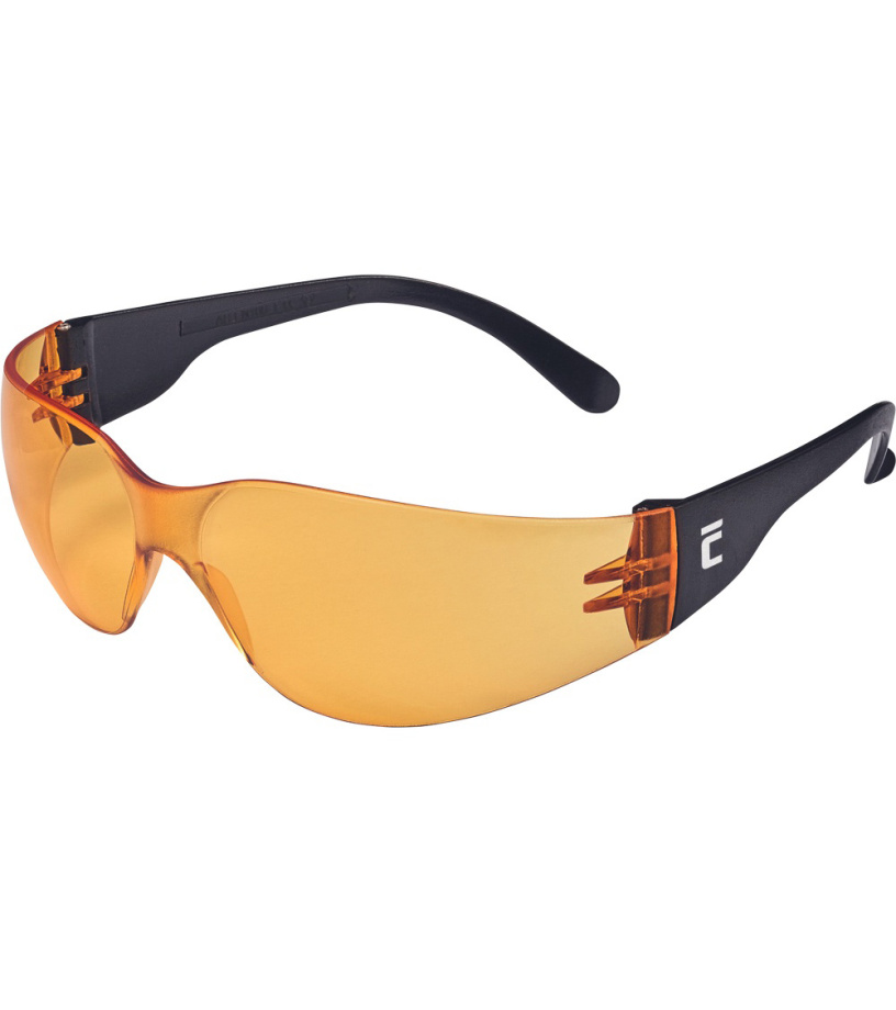 Brýle sportovního designu s polykarbonátovým zorníkem třídy 1F dle normy EN 166. Zorník s ochranou proti poškrábání a zamlžení. Ochrana proti letícím částicím s nízkou energií. Žlutý zorník s ochranným filtrem proti UV záření dle normy EN 170. Kouřový zorník s protislunečním filtrem dle normy EN 172