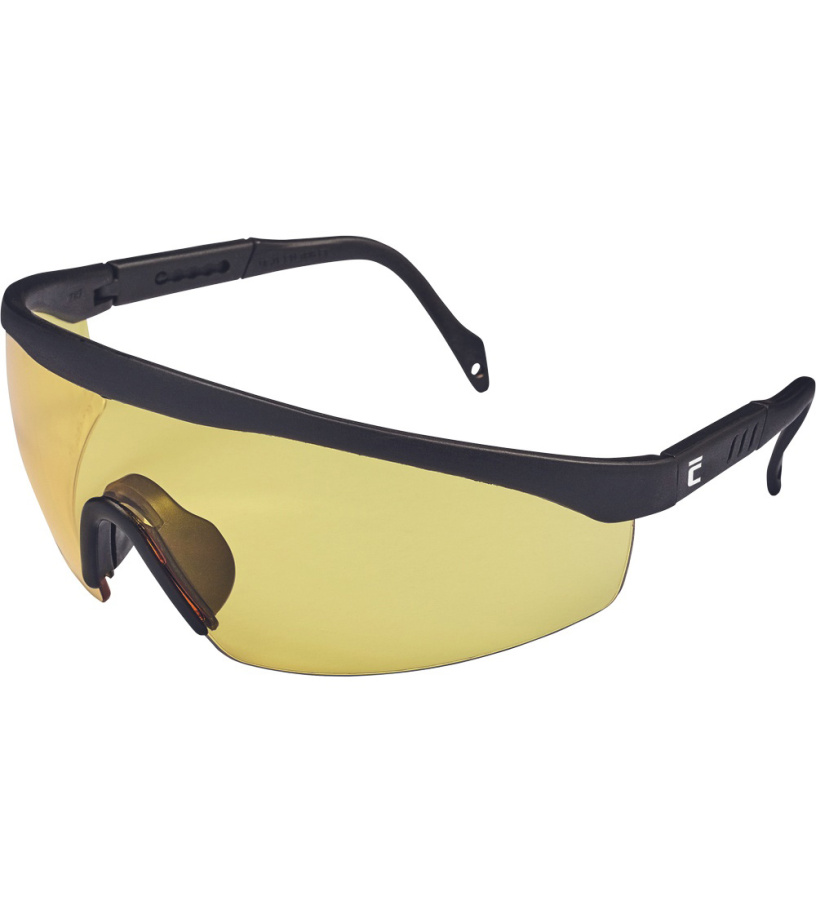 Ochranné brýle s polykarbonátovým zorníkem třídy 1FT dle normy EN 166. Zorník s ochranou proti poškrábání a zamlžení. Ochrana proti letícím částicím s nízkou energií. Nastavitelná délka stranic. Žlutý zorník s ochranným filtrem proti UV záření dle normy EN 170. Kouřový zorník s protislunečním filtrem dle normy EN 172.