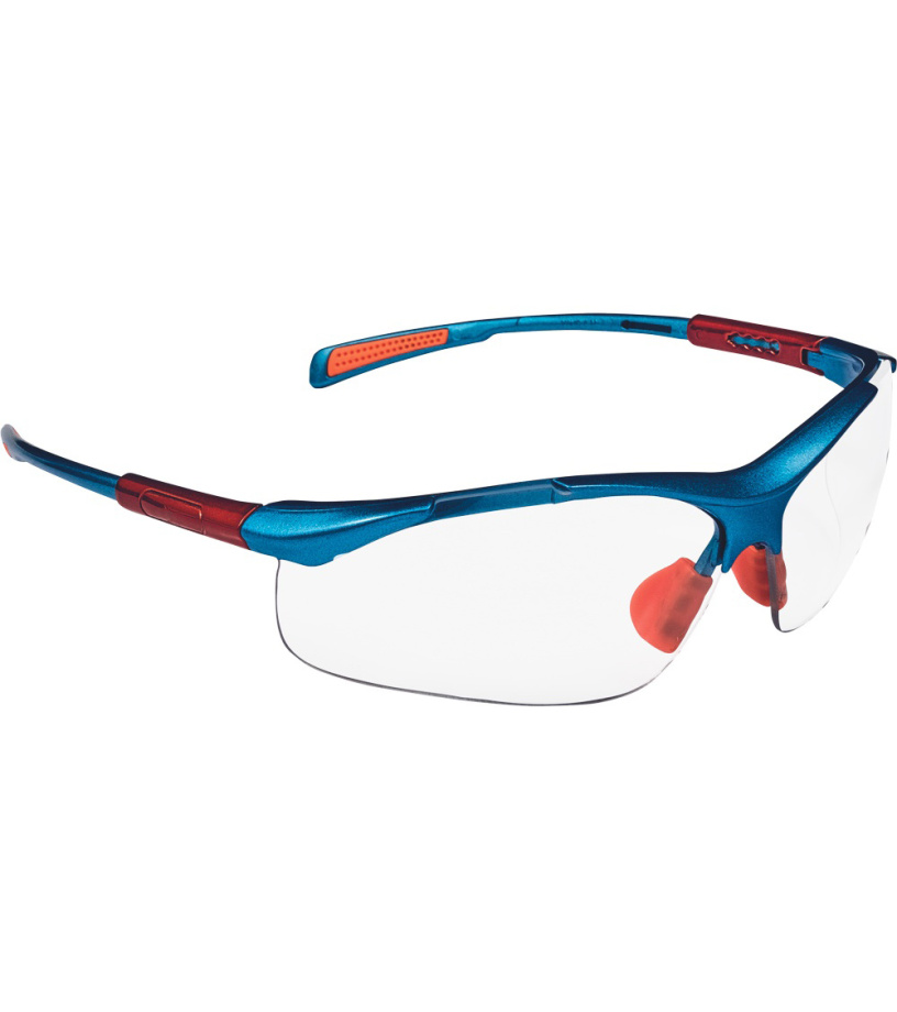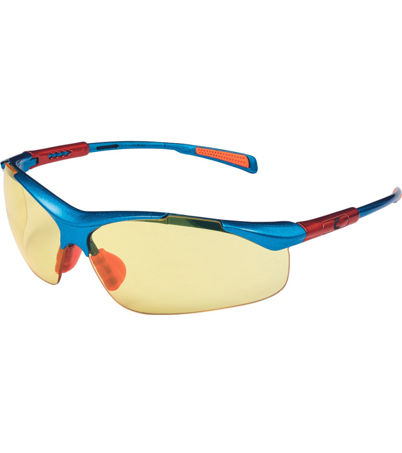 Brýle sportovního vzhledu optické třídy 1 s polykarbonátovým zorníkem s úpravou proti poškrábání a orosení (třída F dle normy EN 166). Ochrana proti nárazu s malou energií a nastavitelnou délkou stranic. Žlutý zorník má ochranný filtr proti UV záření dle normy EN 170, šedý zorník má ochranný protisluneční filtr dle normy EN 172.