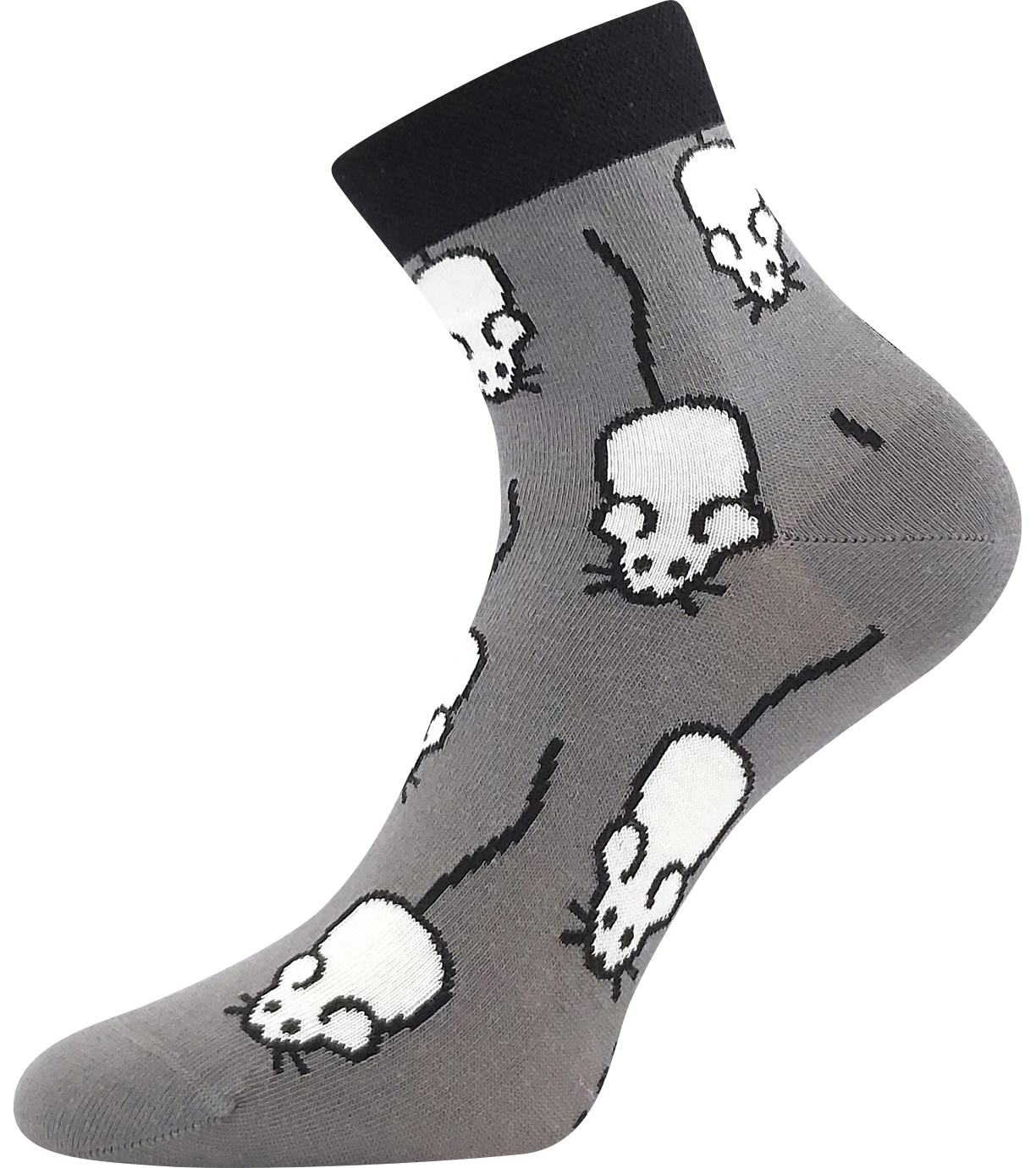 Unisex módne "trendy" ponožky s obrázkom, nielen na každodenné nosenie, ale aj ako spoločenské, pletené z česanej bavlny s elastanom, vďaka čomu dokonale sedia na nohe, navyše majú voľný nekrčivý piké lem, 200-ihličkový úplet je jemný, takže každý detail obrázka je zreteľný, reťazová špička nikde netlačí a zaručuje pohodlie a komfort pri nosení.