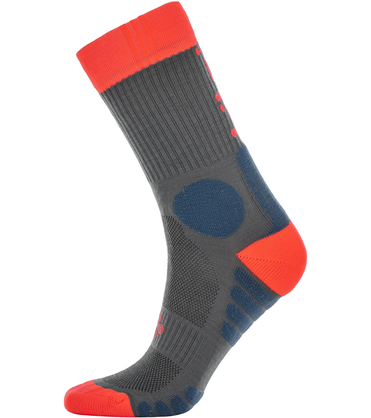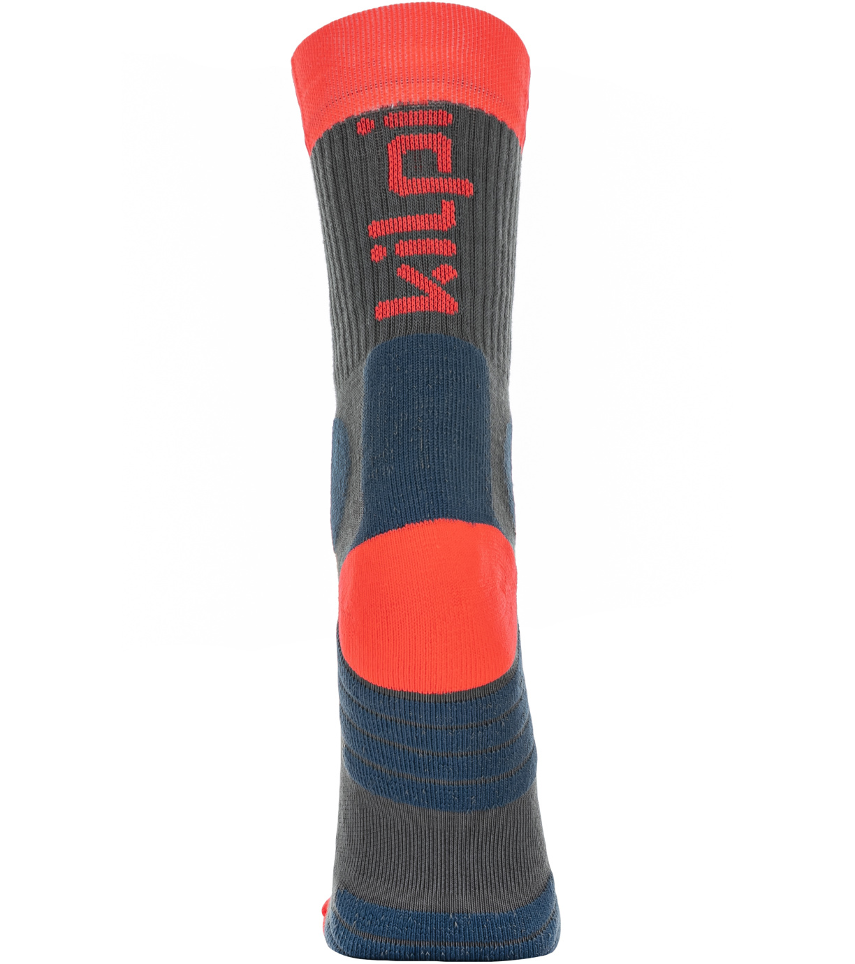 Ponožky Kilpi MORO-U s konštrukciou a materiálom zo zmesi merino vlny a syntetických vlákien sú ideálne na outdoorové aktivity a turistiku v chladnejšom počasí. Rôzne typy úpletov sú rozdelené do zón podľa ich funkcie. Prirodzenou vlastnosťou merino vlny je, že dokáže neutralizovať pot, a tým eliminovať nepríjemný zápach a prirodzene odpudzuje nečistoty. Polyesterové vlákna s iónmi striebra majú mierny antibakteriálny účinok a zvyšujú pevnosť ponožky v ťahu. Elastan je známy tým, že zlepšuje pružnosť. Vysoký komín zakončený bezšvovým lemom je veľmi mäkký a netlačí. Plyšová oblasť päty a prstov je odolná voči oderu. Nízky úplet na priehlavku pomáha odvádzať vlhkosť, kompresný lem okolo priehlavku fixuje ponožku, takže sa nezhrňuje. Členkové kosti sú chránené proti otlakom hrubým plyšovým úpletom. Vyberte si z dvoch farieb ponožiek Kilpi MORO-U.