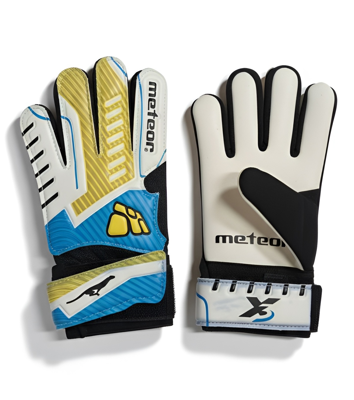 Kvalitné brankárske rukavice značky Meteor, vhodné na tréning aj rekreačné zápasy. Dlaň je vyrobená z priľnavého latexového materiálu, ktorý zaisťuje dobrý grip lopty a istotu pri chytaní aj za horších podmienok. Ergonomický tvar rukavíc podporuje prirodzený pohyb prstov a pohodlie pri nosení.