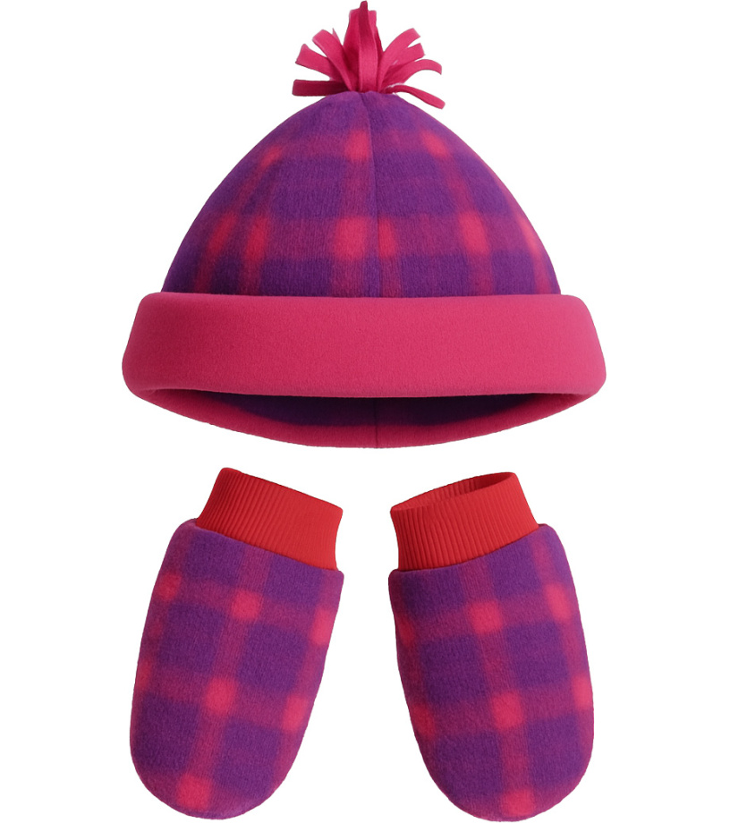 Detská sada obsahuje čiapku a palčiaky s kockovaným vzorom. Čiapka s ozdobným strapcom a vyhrnutým lemom príjemne hreje a skvele padne. Palčiaky s pružnými manžetami dobre držia na rukách a chránia pred zimou. Ideálne pre chladné dni aj zimné radovánky vonku.