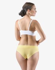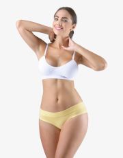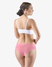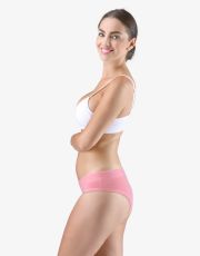 Dámske nohavičky francúzskeho strihu so širším pásom, dámska spodná bielizeň na mieru. Pás je zakončený širším lemom z rovnakého materiálu. Nohavičky sú ukončené úzkym lemom z rovnakého materiálu. Nohavičky sú jednofarebné.