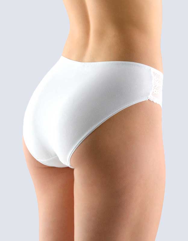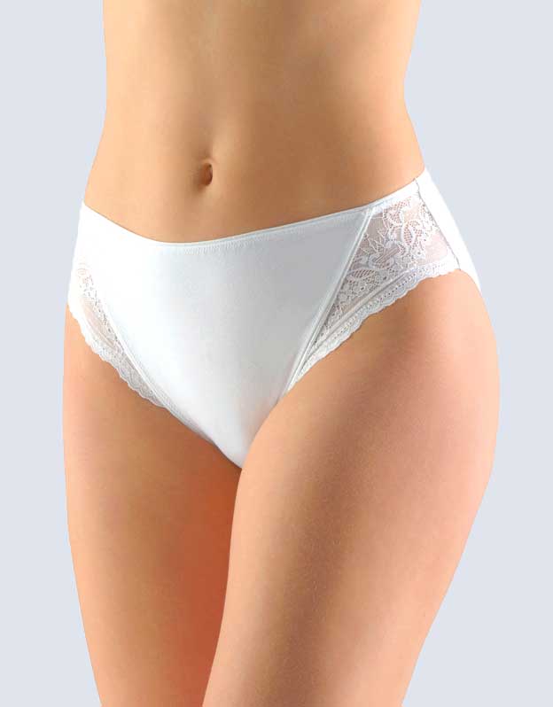 Klasický strih nohavičiek s úzkymi bokmi, dámska šitá spodná bielizeň. V páse je všitý ozdobný okraj. V nohavičkách je všitá guma s ozdobným okrajom. Nohavičky sú na bokoch zdobené čipkovou vsadkou, ktorá má v nohavičkách ozdobný okraj. Nohavičky sú jednofarebné.
