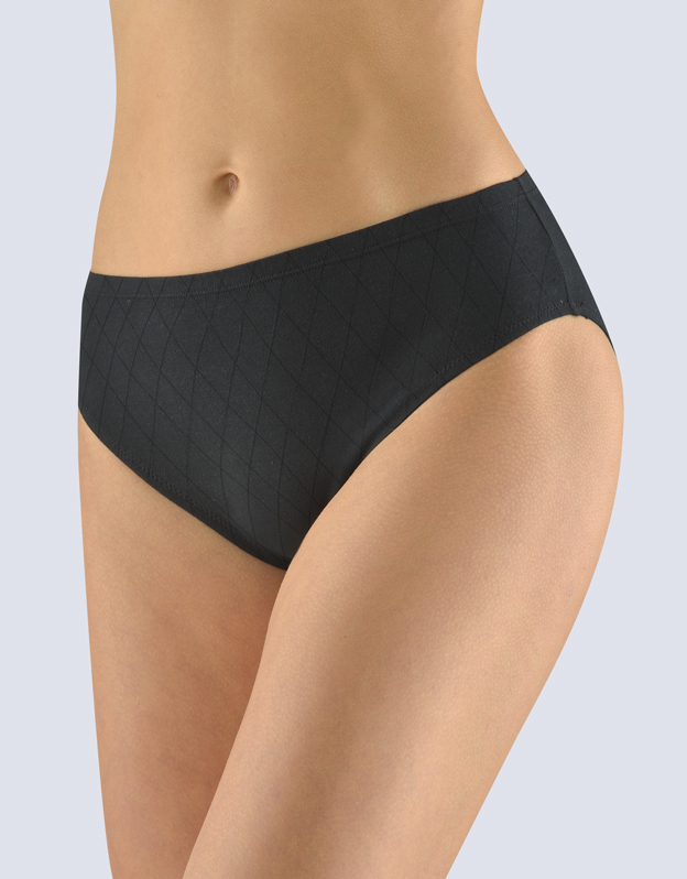 Klasický strih nohavičiek, dámska šitá spodná bielizeň. V páse je všitá úzka guma. Nohavičky sú obšité úzkou gumičkou. Nohavičky sú jednofarebné a zdobí ich jemný žakárový vzor.