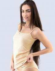Košieľka s úzkymi ramienkami, bezšvové spodné prádlo pre ženy. Spodný okraj je bezšvovo všitý. Prieramky a výstrih sú lemované lemovacími pásikmi, ktoré prechádzajú do ramienok. Košieľka je jednofarebná. Je bez loga. Košieľka má predĺženú dĺžku.