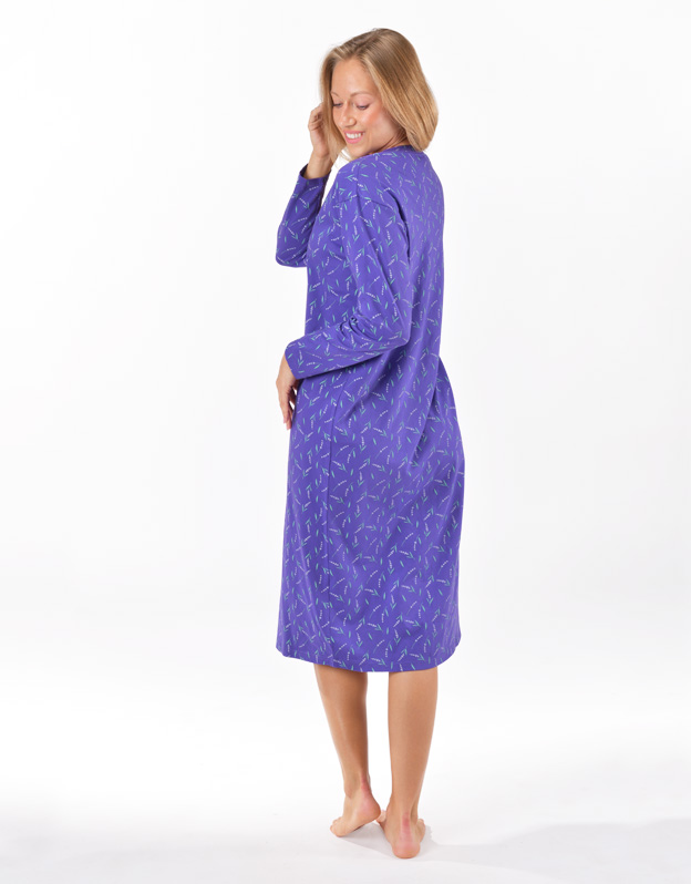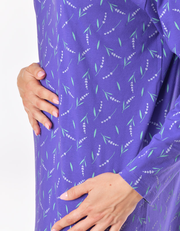 Základom kvalitného spánku je vaše pohodlie, ku ktorému vám pomôže aj pohodlná nočná bielizeň. Naša dámska nočná košieľka s dlhým rukávom je ideálnou voľbou pre každú milovníčku voľných strihov a kvalitných materiálov. Nočná košieľka je dlhá, zdobí ju potlač s levanduľami, nikde neškrtí. Materiál zo 100% bavlny vám zaistí pohodlie po celú noc.