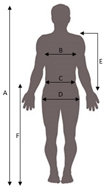 | B | Obvod hrudníka | 80 - 86 | 88 - 92 | 96 - 100 | 104 - 108 | 112 - 116 | 120 - 124 | 128 - 132 | 136 - 140 | 144 - 148 | 152 - 156 | 160 - 164 |