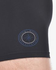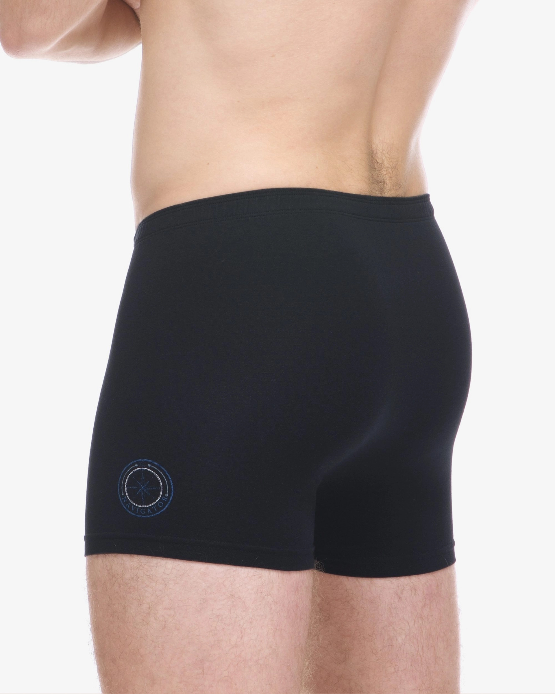 Boxerky s kratšou nohavičkou, pánske šité prádlo. V pásovom kraji je zašitá širšia guma. Nohavičky sú začistené podohnutím. Zadný diel je hladký. Boxerky sú jednofarebné. Na nohavici je umiestnený solitér.