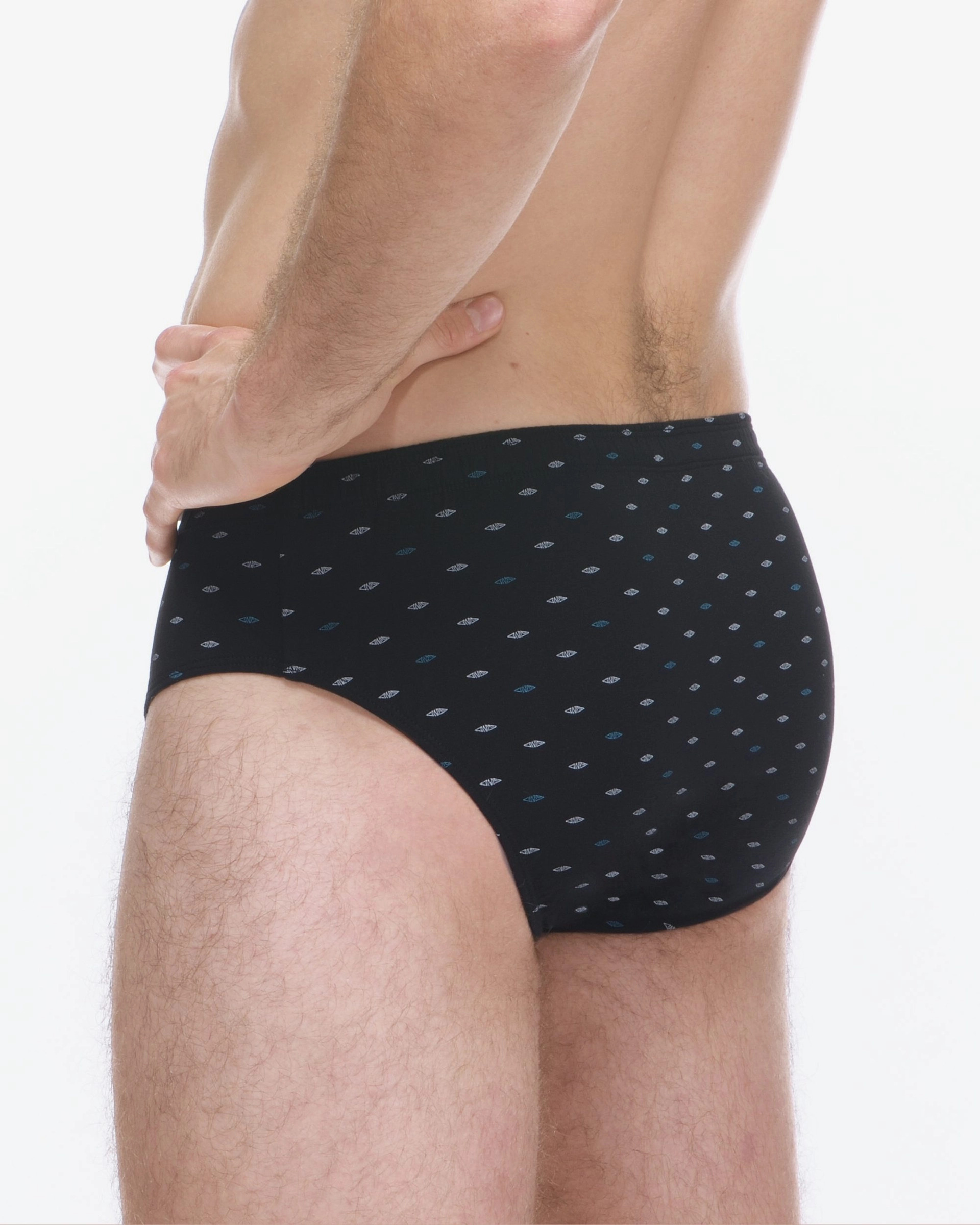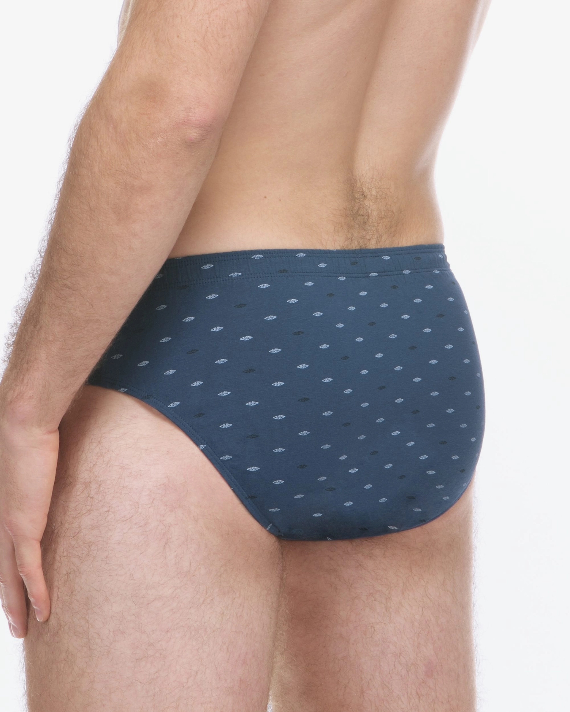 Slipy so širším bokom v klasickom strihu budú ideálnou voľbou pre každého, kto má rád prírodné materiály. Slipy majú vsadky potlačené drobným vzorom. Bavlnený úplet doplnený o elastanové vlákna, je pohodlný a ideálny na každodenné nosenie.