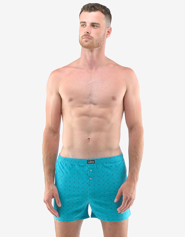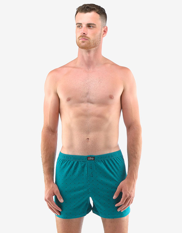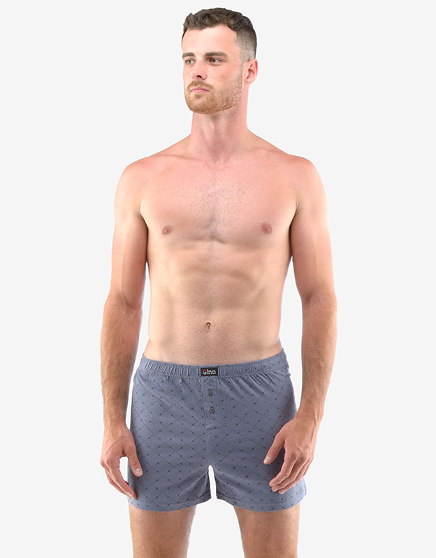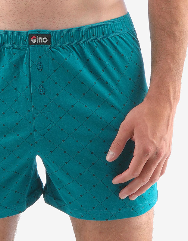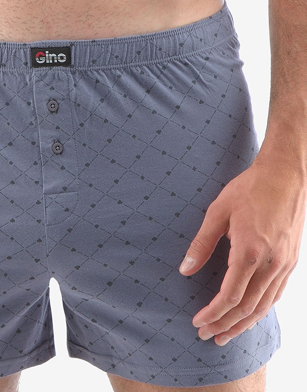 Statočne voľné šortky potešia každého, kto má rád klasický pohodlný strih voľných šortiek a prírodné materiály. Samozrejmosťou je dobre padnúci pás a rozparok na dva gombíky. Tento kúsok má módny celoplošný vzor a nášivku s logom Gino na páse a je vhodný na každodenné nosenie.