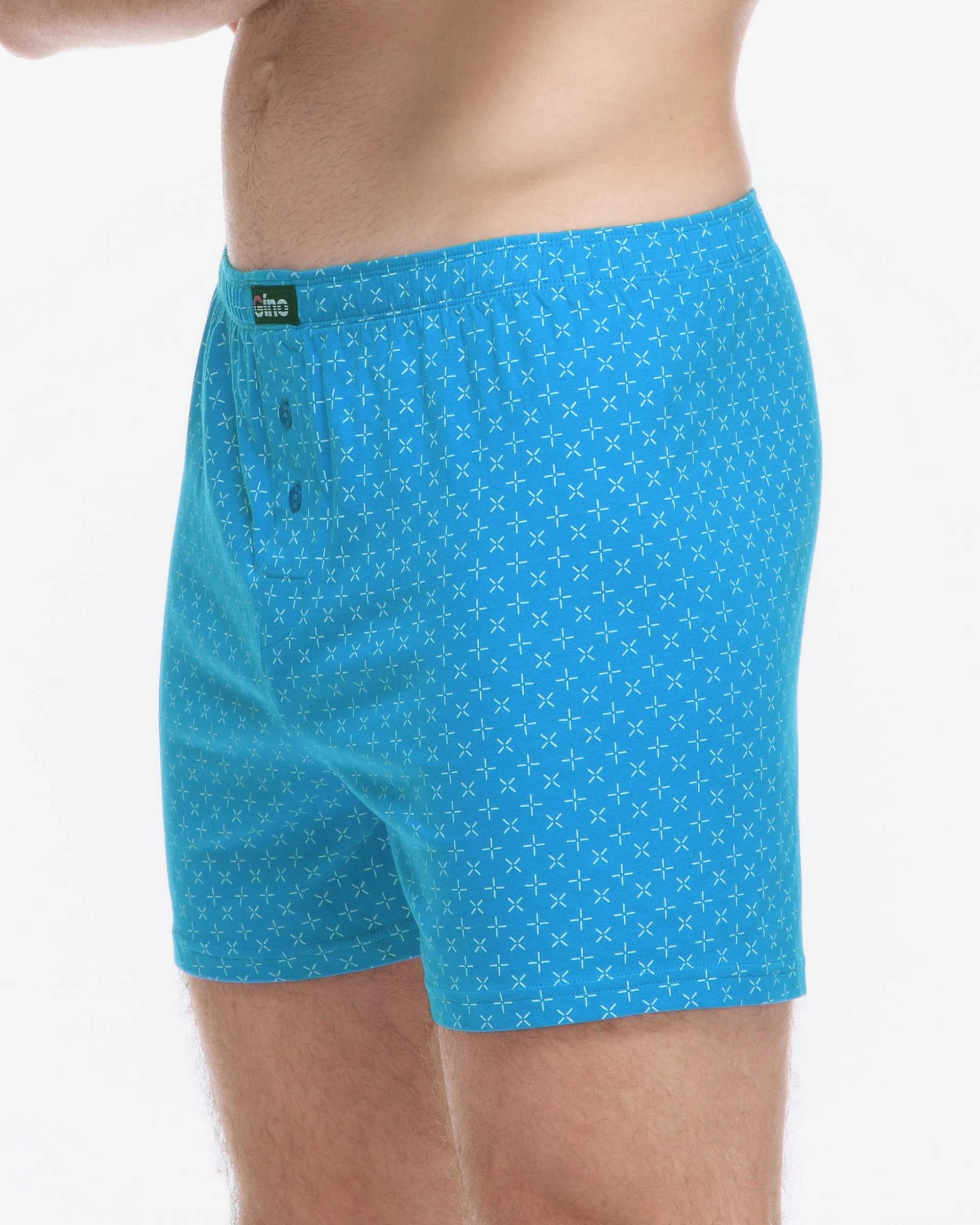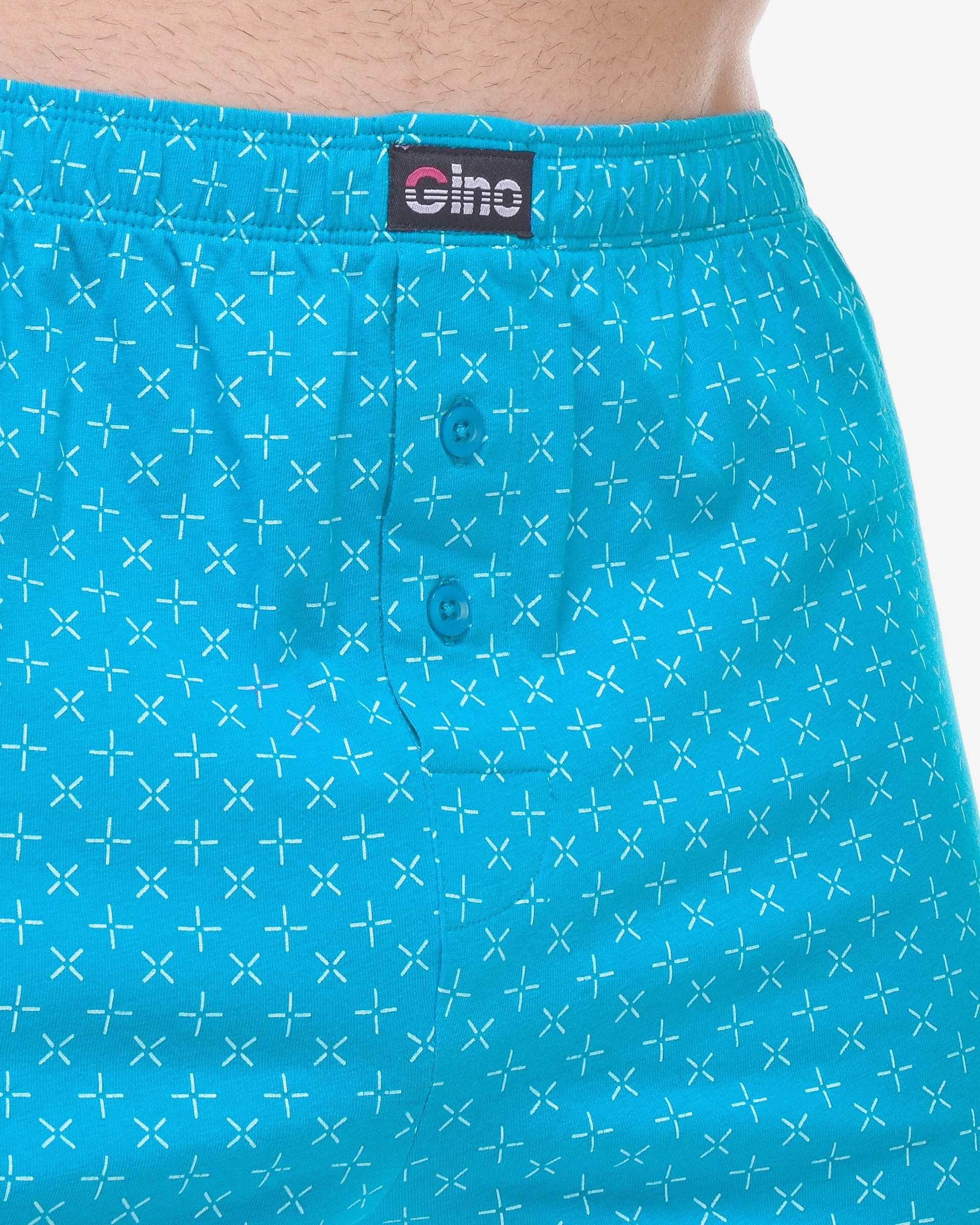 Voľné trenírky zo 100% potešia každého, kto má rád klasický pohodlný strih voľných trenírok a prírodné materiály. Dobre padnúca pasová guma a rozparok na dva gombíky sú samozrejmosťou. Tento kúsok má trendy celoplošný vzor av páse nášivku s logom Gino a sú vhodné na každodenné nosenie.