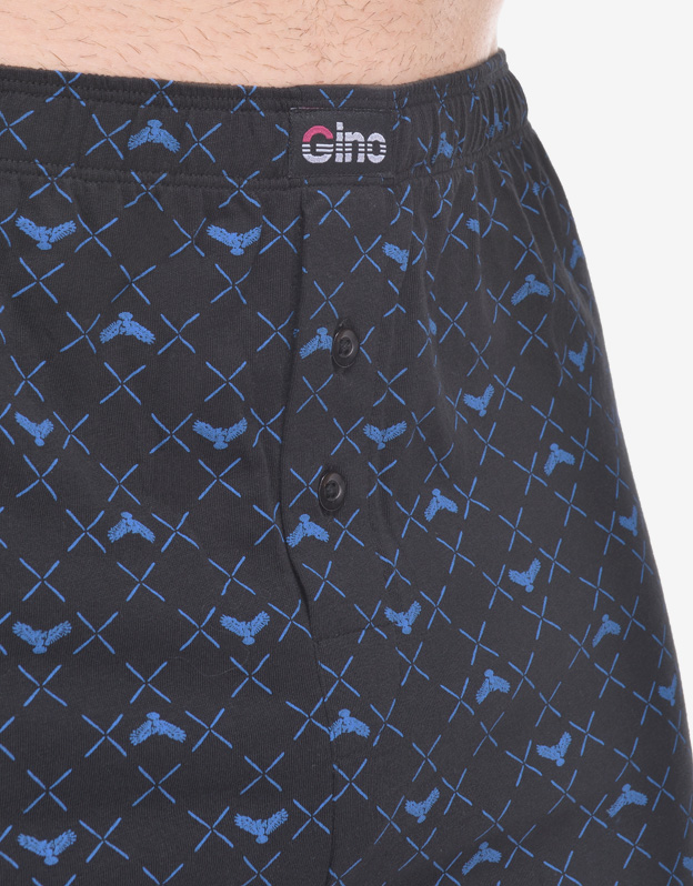 Voľné trenírky potešia každého, kto má rád klasický pohodlný strih a prírodné materiály. Dobre padnúca pasová guma a rozparok na dva gombíky sú samozrejmosťou. Trenírky sú potlačené, v páse majú nášivku s logom Gino. Sú vhodné na každodenné nosenie.