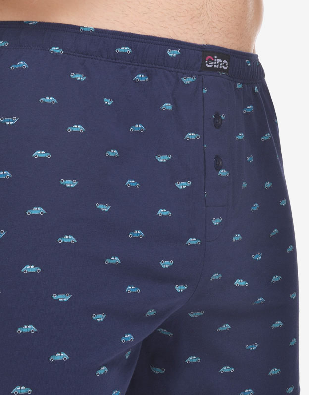 Voľné trenírky zo 100% bavlny potešia každého, kto má rád klasický pohodlný strih voľných trenírok a prírodného materiálu. Dobre padnúca pasová guma a rozparok na dva gombíky sú samozrejmosťou. Tento kúsok zdobí celoplošný vzor. V páse je nášivka s logom Gino a sú vhodné na každodenné nosenie.