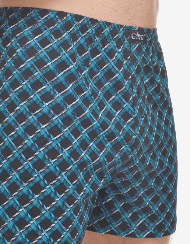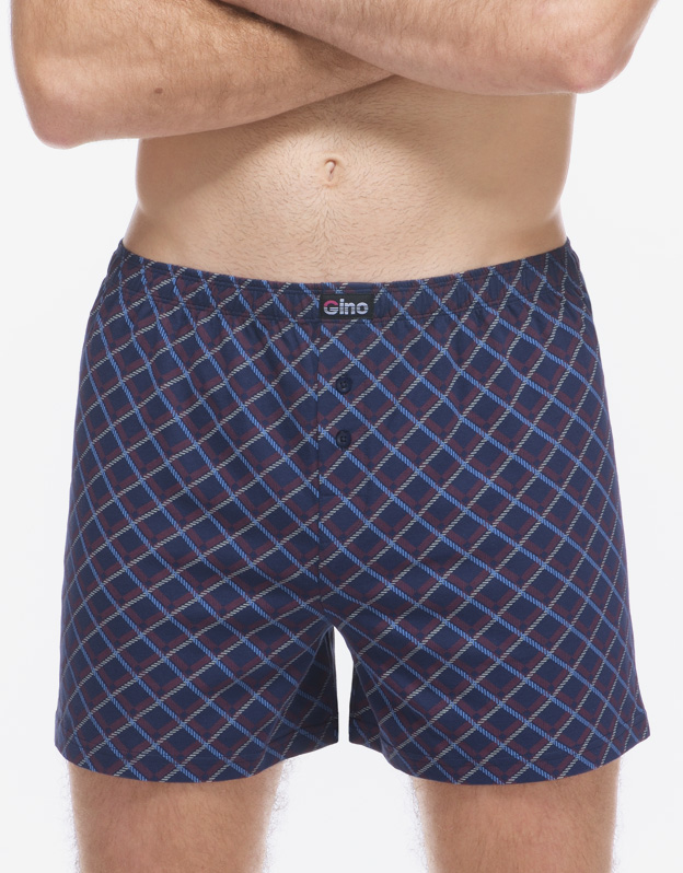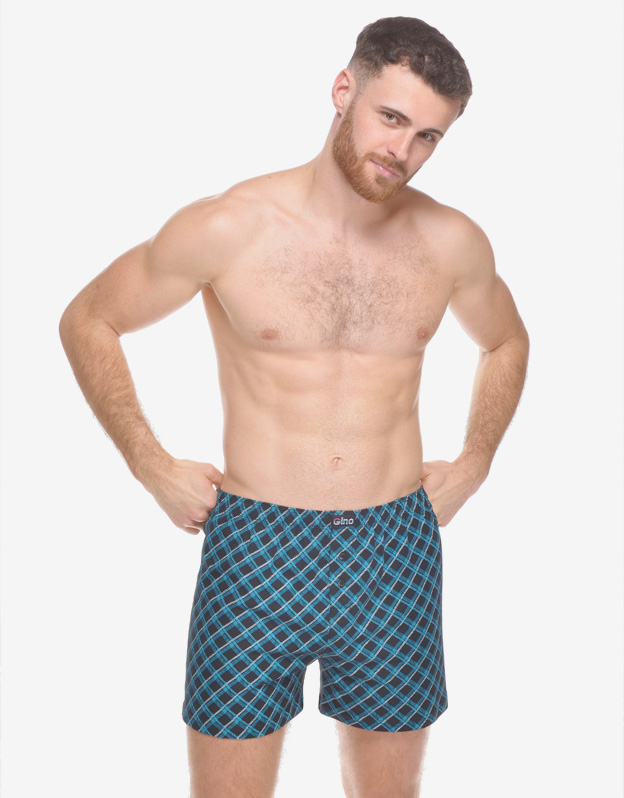 Voľné trenírky potešia každého, kto má rád klasický pohodlný strih a prírodné materiály. Dobre padnúca pasová guma a rozparok na dva gombíky sú samozrejmosťou. Tento kúsok je potlačený výrazným vzorom káro. V páse je nášivka s logom Gino. Trenírky sú vhodné na každodenné nosenie.