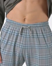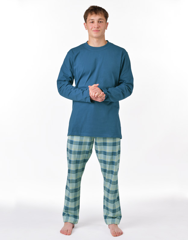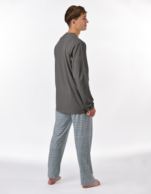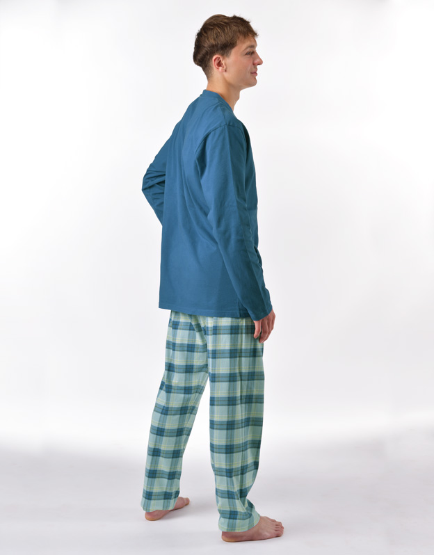 Pánske klasické pyžamo voľného strihu z jemného úpletu Vám poskytne pohodlie počas spánku. Nohavice s obľúbeným vzorom káro dopĺňa jednofarebné tričko s dlhými rukávmi.