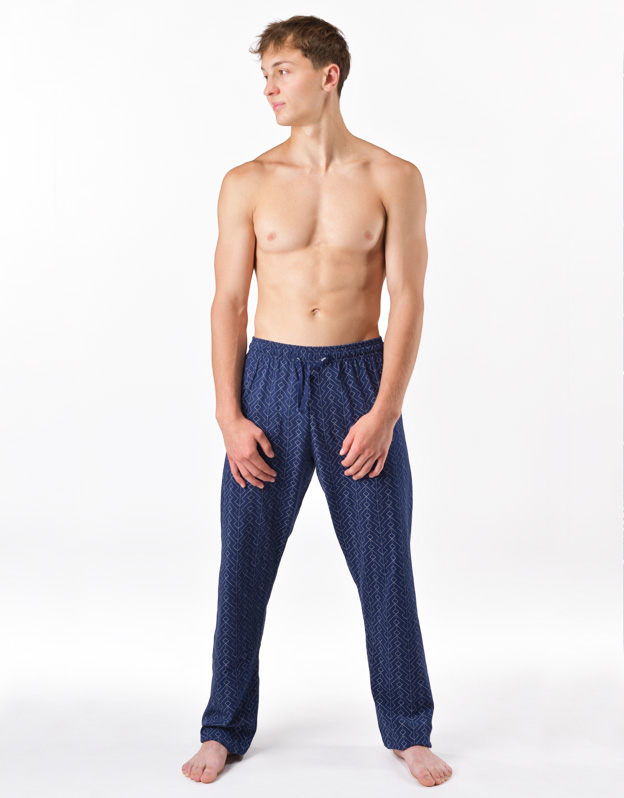 Pánske dlhé voľné nohavice sú tu pre Váš pokojný spánok aj domáce pohodlie. Zdobí ich jemná potlač.
