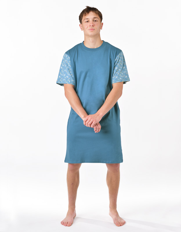 Pánska nočná košeľa s krátkymi rukávmi z jemného úpletu Vám poskytne jedinečné pohodlie počas spánku. Rukávy sú potlačené drobnejším vzorom.