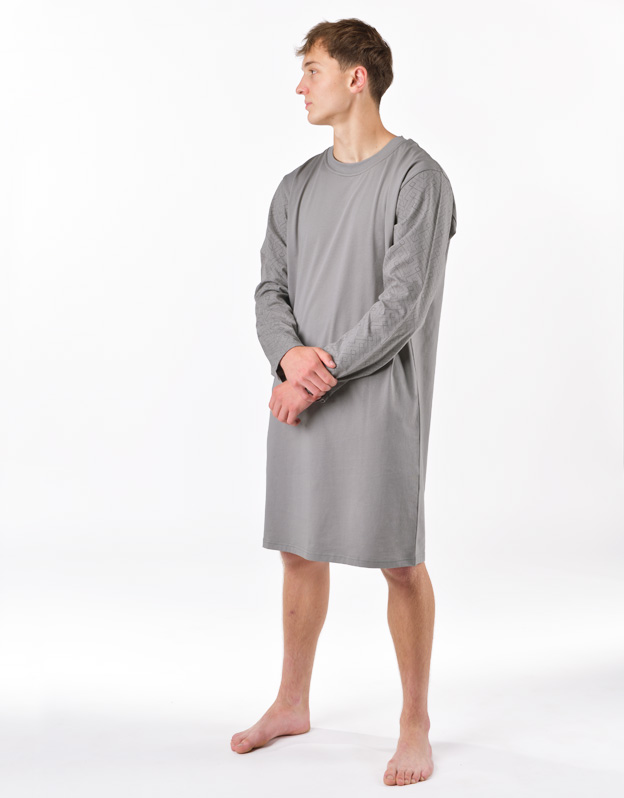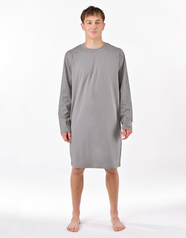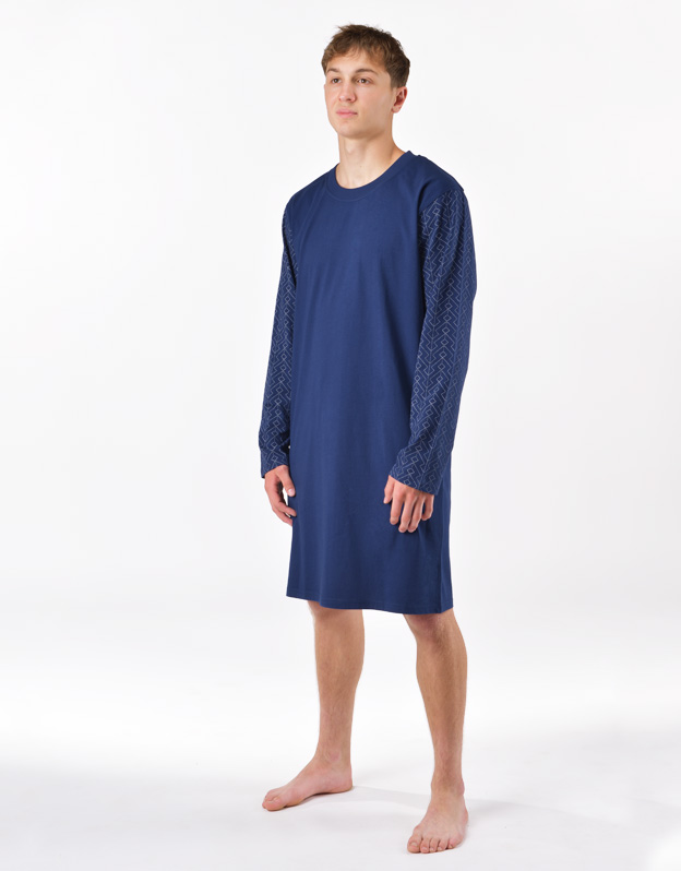 Pánske nočné košele z jemného úpletu Vám poskytne jedinečné pohodlie počas spánku. Jednofarebná košeľa je doplnená potlačou na rukávoch.