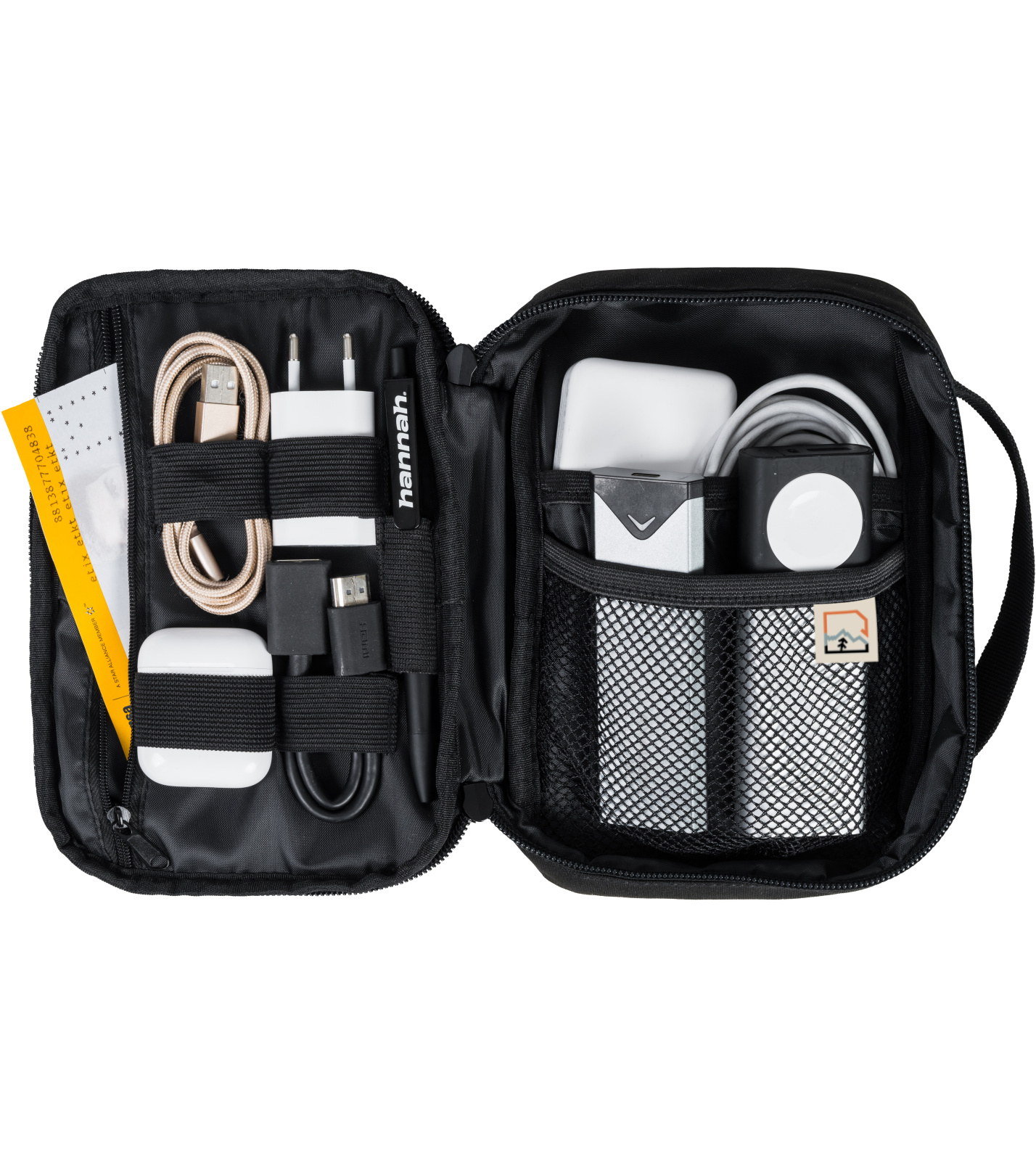 Na služobných cestách vás sprevádza praktické polstrované puzdro. Má zapínanie na zips, vrecko na powerbanku alebo nabíjačku, sieťované vrecko na myš, držiak na pero, vrecko na zips a úchyty na káble, adaptéry alebo slúchadlá.