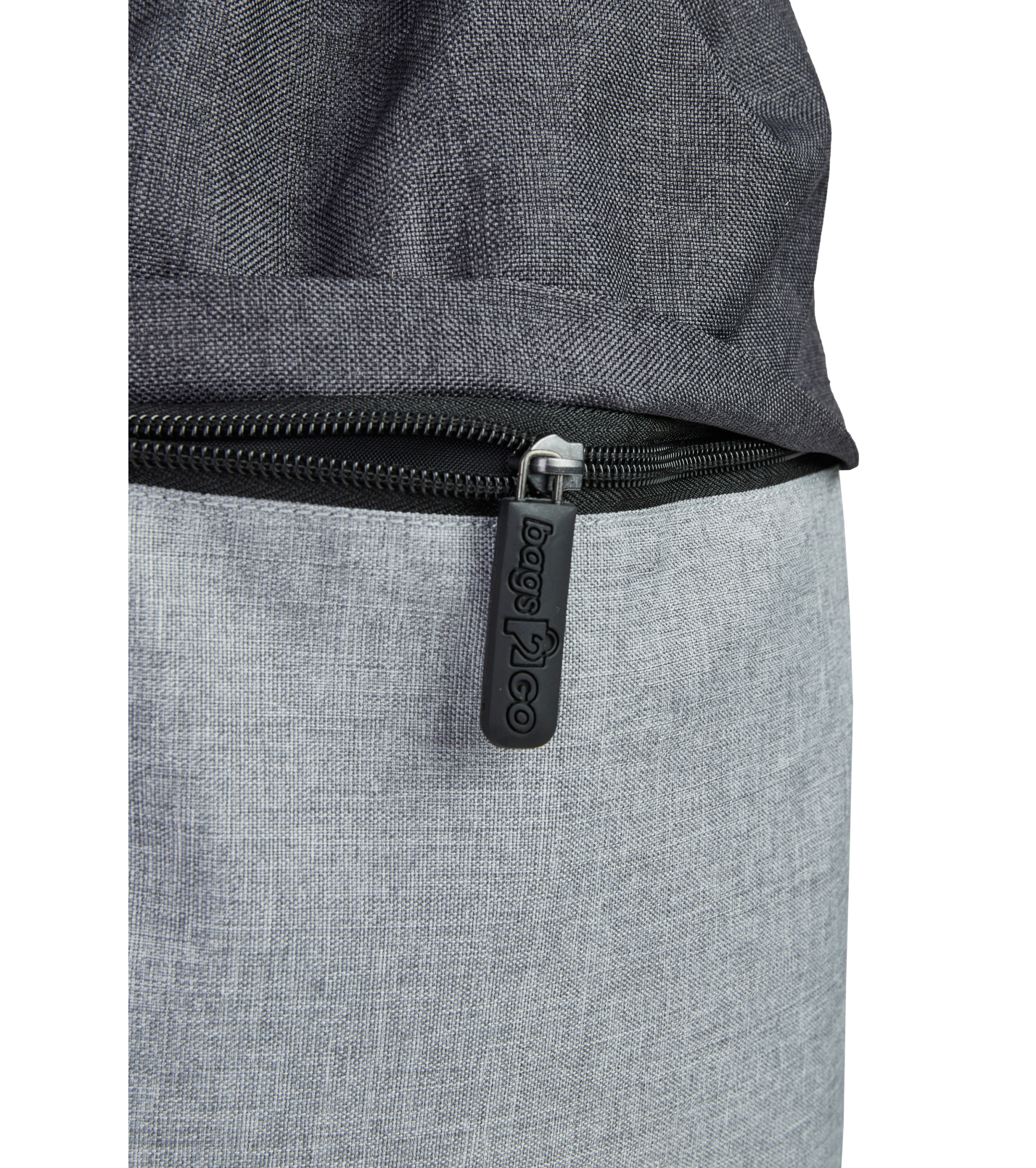 Zapínanie na čierny zips, gumový sťahovač zipsu s embosovaným nápisom „bags2GO“